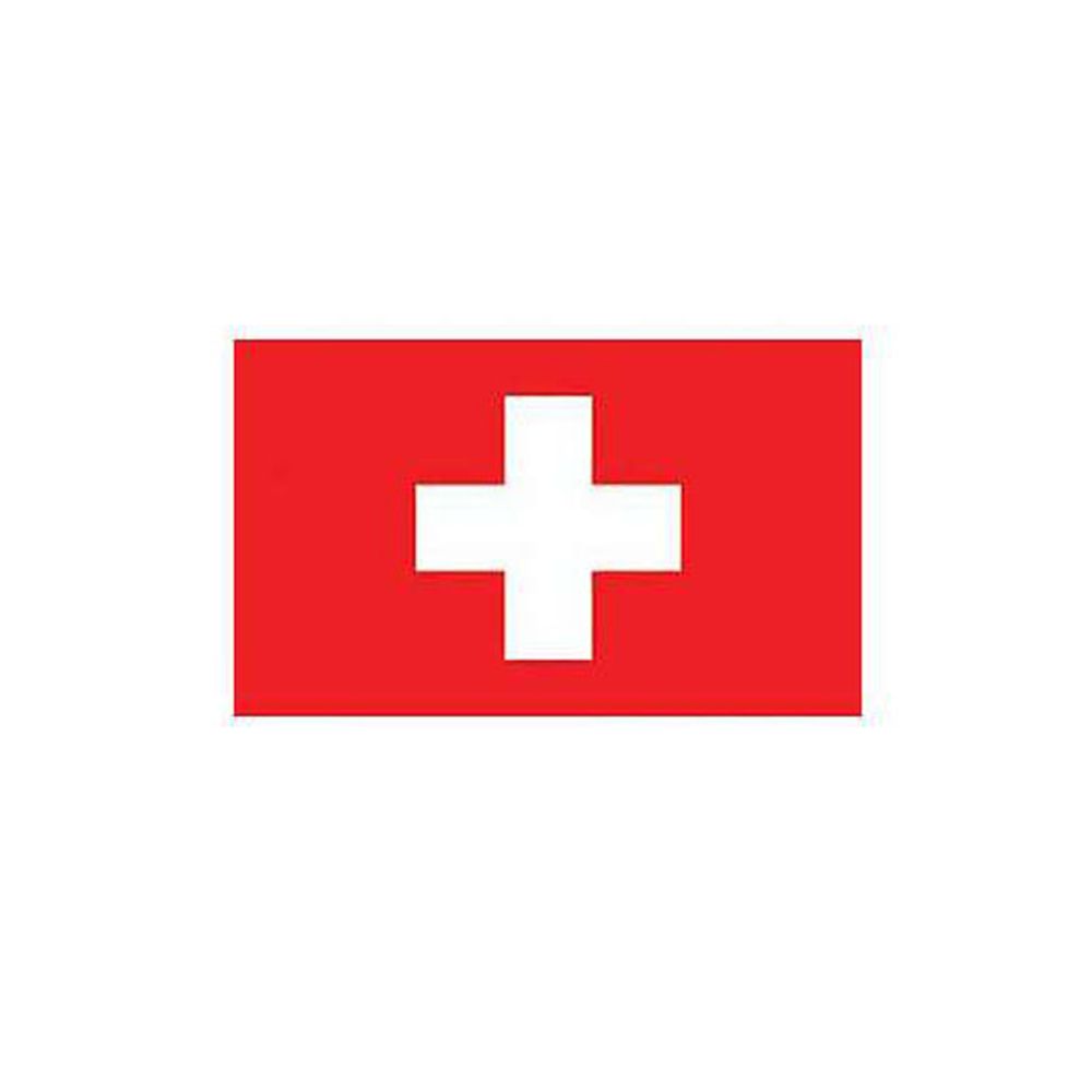 - Classic red field with centered white cross representing Switzerland.