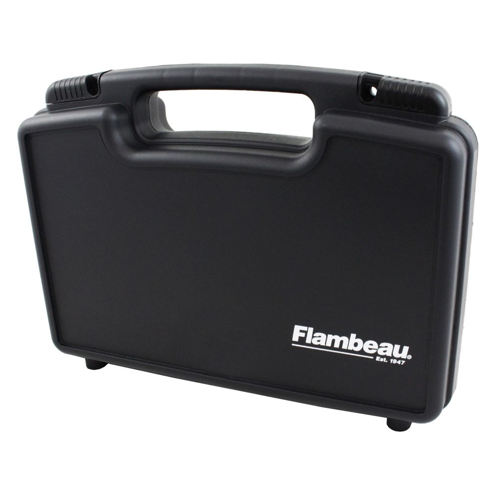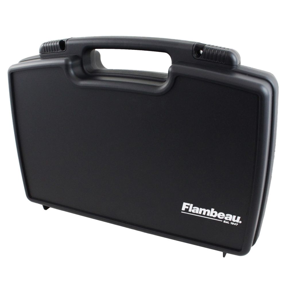 The Flambeau Safe Shot Pistol Case keeps your guns safe and secure for transportation and home storage. Built from durable polymer with a corugated-foam-lined compartment that can fit most revolveres, pistols, and spare magazines. The sliding latches are padlock compatible and comply with TSA airline safety requirements.