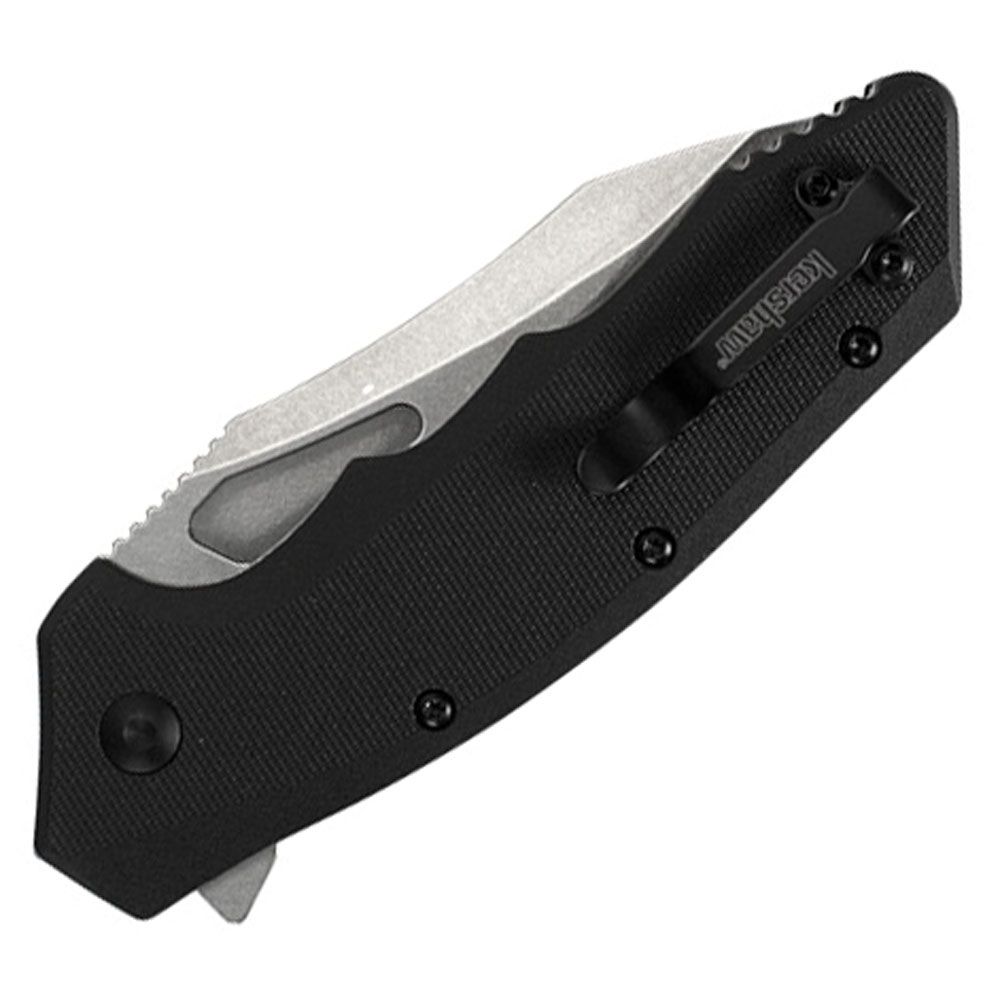 The eye-catching blade is made of 8Cr13MoV stainless steel, which can take and hold a sharp edge, yet resharpens easily. Then Kershaw’s heat treatment brings out the best in this top-value steel. The blade is stonewashed to help hide hard use scratches. The result is a very distinctive looking blade that performs well, too. The handle is glass-filled nylon, textured and chamfered for a solid, comfortable grip. Pair that with the deep finger grooves on the underside of the handle and the Flitch offers an exceptionally secure grip. A sturdy liner lock keeps the blade in place during use, then releases easily when you’re ready to EDC it.