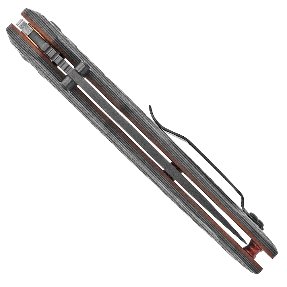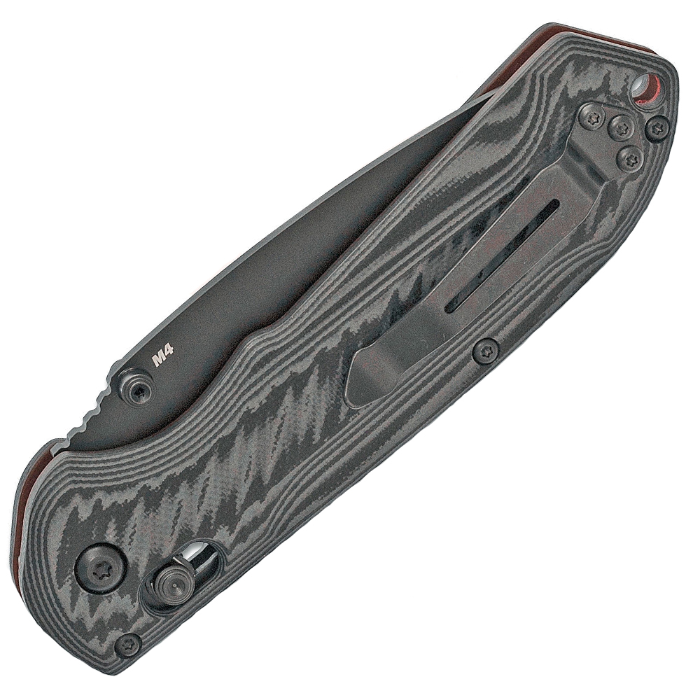 Form and function in the same package. The first variant in the Freek family brings together two incredibly durable materials, G-10 and CPM-M4 steel. The gray and black layered G-10 is milled to provide excellent grip and style, while the red G-10 base layer and anodized aluminum barrel spacers bring an additional pop of color to the handles. The high-strength CPM-M4 blade is designed for hard use, pushing the limits of what the already tough Freek was meant to do. This knife is a true super Freek.
