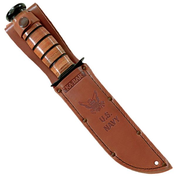 Full-size Brown Leather USN Sheath, Fits KA-BARS with 7" blade and double guard.