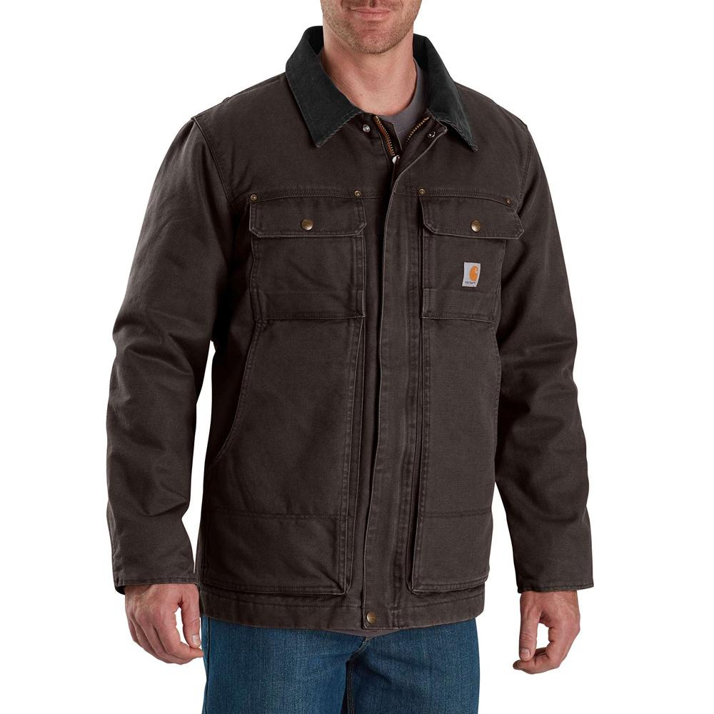 Looks traditional, feels exceptional. Engineered design provides stretch without bulk, and every element works with you so you can work easier. Move like you mean it. 12- ounce, 100 percent ring spun washed cotton duck • nylon taffeta quilted to the 80 gram 3 m thinsulate insulation • all full swing gear is built broken-in to help you move like you mean it 24/7 and features stretch across the shoulders, arms that move free without the jacket riding up, and bigger bend in the elbows • corduroy-trimmed collar • two-way center front zipper with snap and hook-and-loop secure storm flap • two bellowed chest pockets with button closure • two large bellowed lower-front pockets with reinforcement and tricot lining • internal rib-knit storm cuffs • two inside pockets with hook-and-loop closure and zipper • draw cord adjustment at waist • triple-stitched main seams for durability • back length: large regular: 32.25 inches; large tall: 34.25 inches • imported Features
