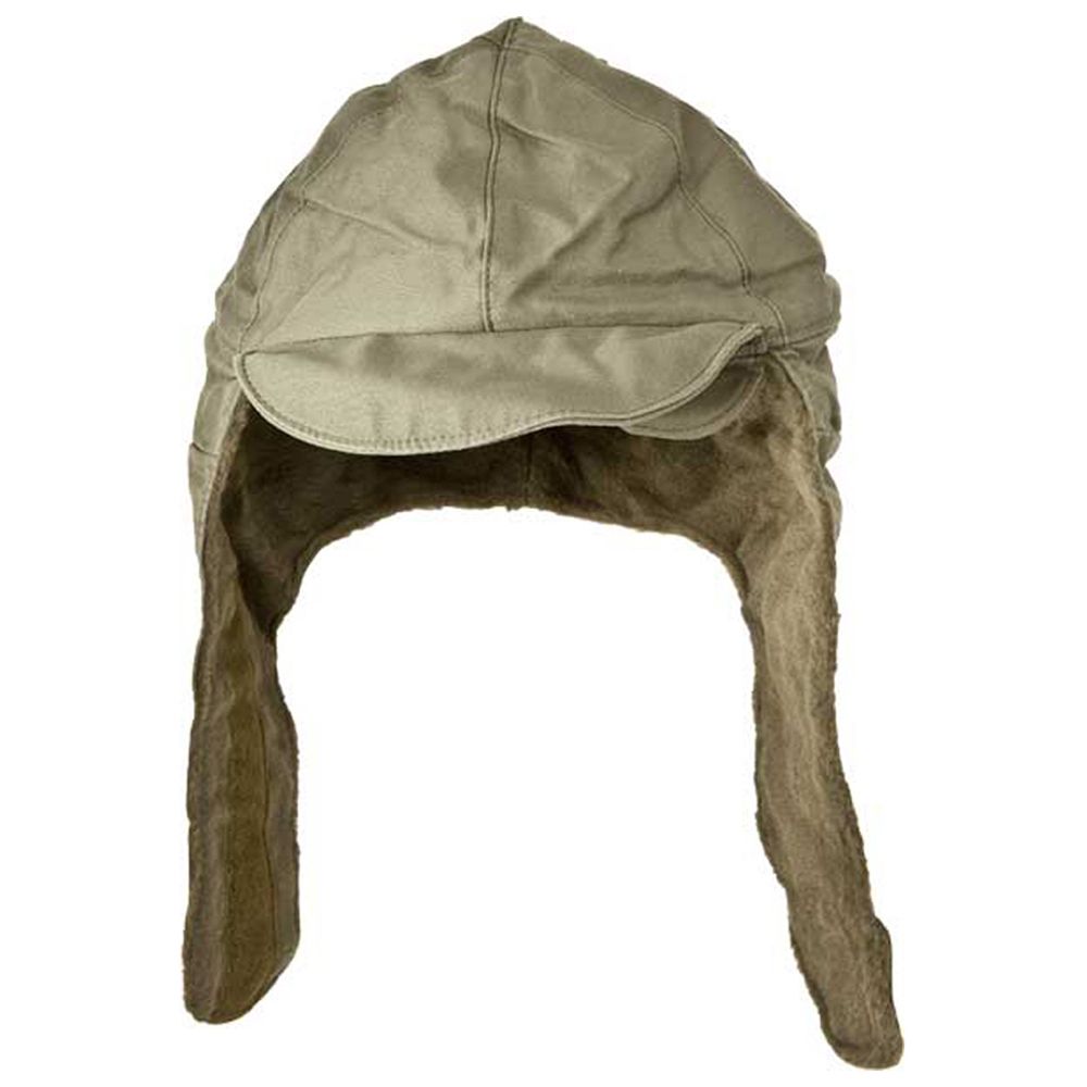Polyester / cotton blend Wool lining Ear flaps grip-strip together on top or drop down for ear protection Synthetic fleece on flaps