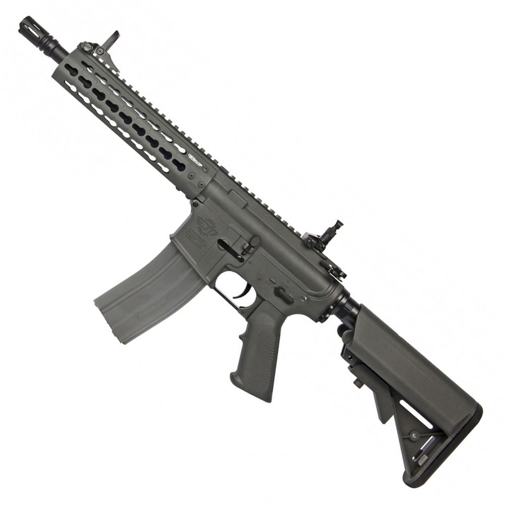 CM15 assault rifle replica by G&G made as a part of the Combat Machine project whose aim is to deliver high-quality replicas at a price that may be considered economical. Combat Machine replicas are characteristic for their highest, distinctive of G&G products, craftsmanship, reliability and high quality of materials used. The main factor that allows reducing the price is the use of a receiver made of high-quality polymer instead of metal. It is also important to note that the receiver was made of fiberglass reinforced polymer. The replica features an SF stock with a rubber stock pad. Inside the stock is room for a battery. The stock is adjustable, which allows for the customization of the replica’s length to the body type and preferences of the User. The replica features a RIS 22 mm rail on top and a KeyMod handguard. The replica also features a gearbox V2 based on 8 mm bearings, which allows for achieving a muzzle velocity of ~320 FPS straight out of the box. This and the implementation of a 463 mm long outer barrel make this replica ideal for middle-ranged activities. Inside is a sealed pneumatic system, equipped with a high-quality chamber and HU bucking.