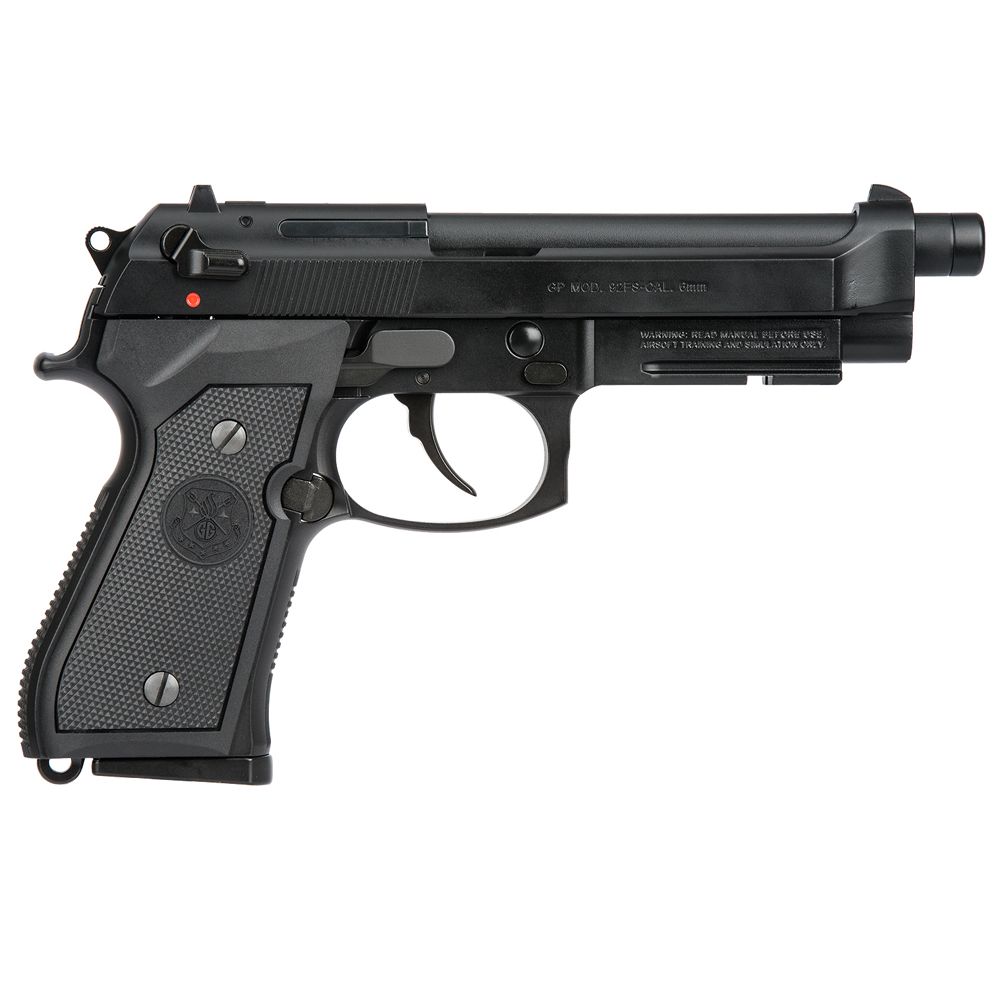 Type: airsoft pistol Power: green gas Material: full metal Overall Length: 226 mm (8.9 in) Weight: 1016 g (2.2 lb) Action: semi-automatic Trigger: single and double action Barrel Length: 117 mm (4.6 in) Blowback: yes Magazine Capacity: 27 rounds Ammo Type: airsoft BBs 6mm Muzzle Velocity: 370 FPS