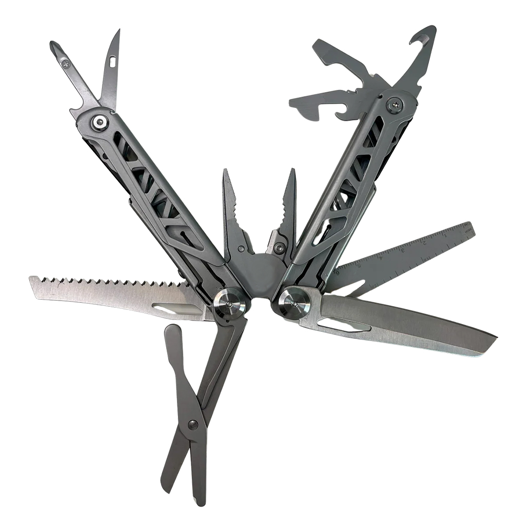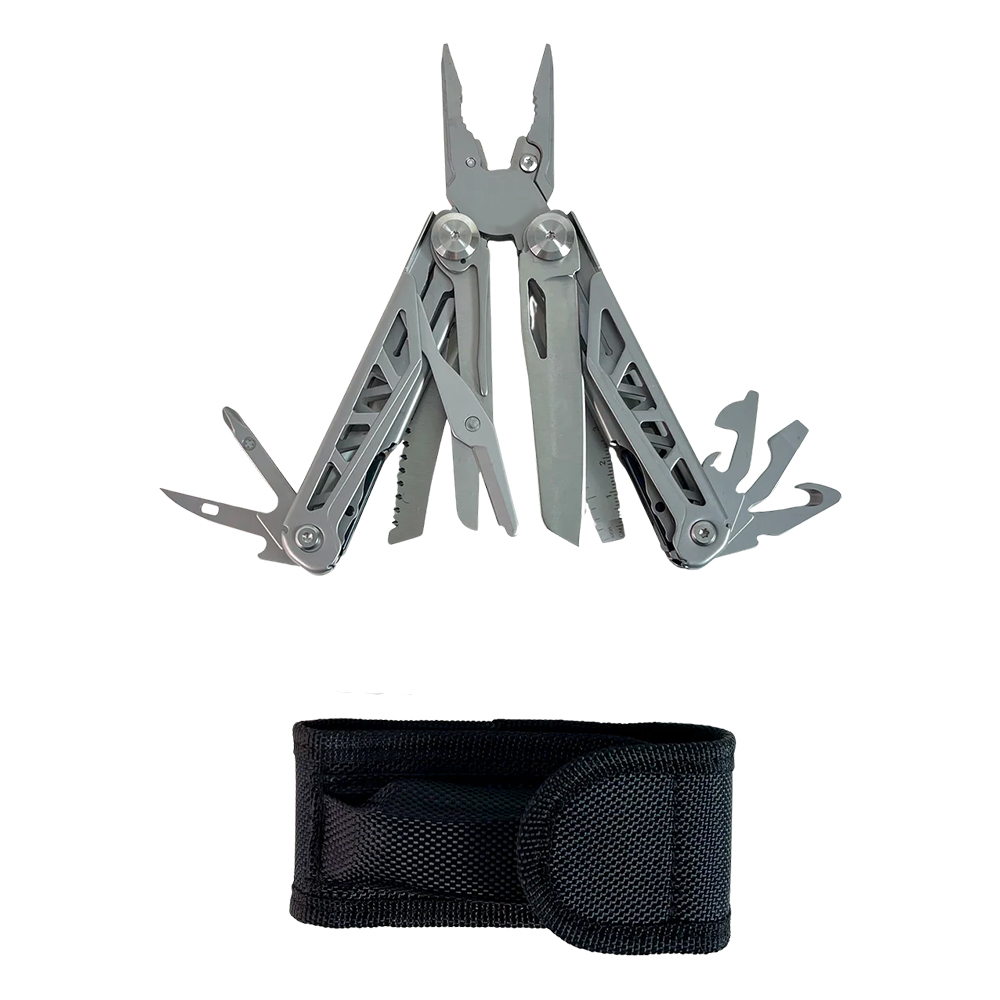 - Includes 13 essential tools such as pliers, blade, screwdrivers, saw, and more.
