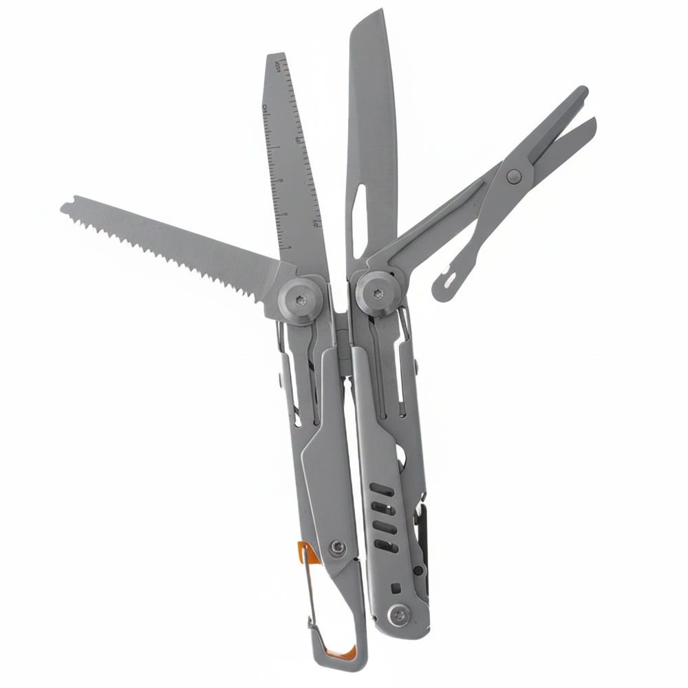 A versatile multi-tool built to handle a variety of tasks, from household repairs to rugged outdoor adventures. Its robust design combines essential tools like pliers, scissors, and a powerful folding knife, making it ideal for survival trips, car maintenance, or campsite needs.