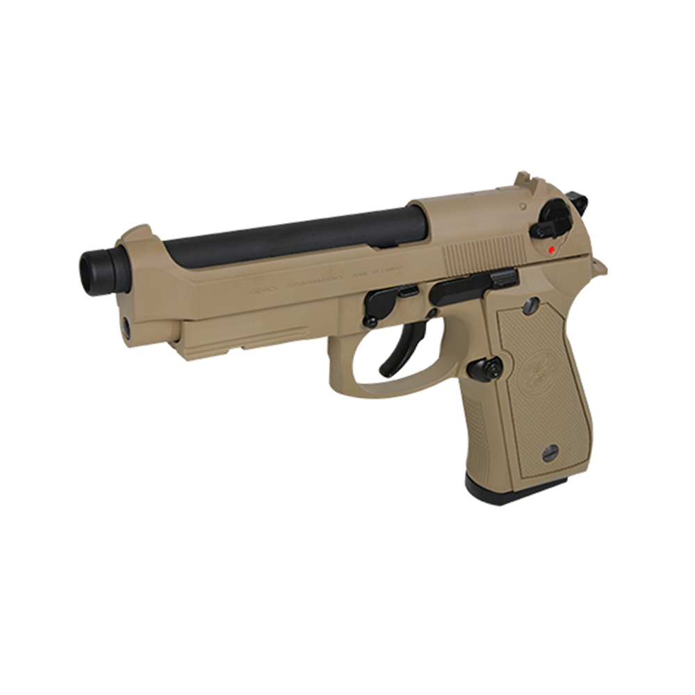Designed for performance and reliability, the refurbished GPM92 Black Tip Desert Tan Pistol delivers a solid shooting experience with its gas-powered blowback system. The full-metal construction provides a realistic feel, while the adjustable hop-up ensures precision with every shot.