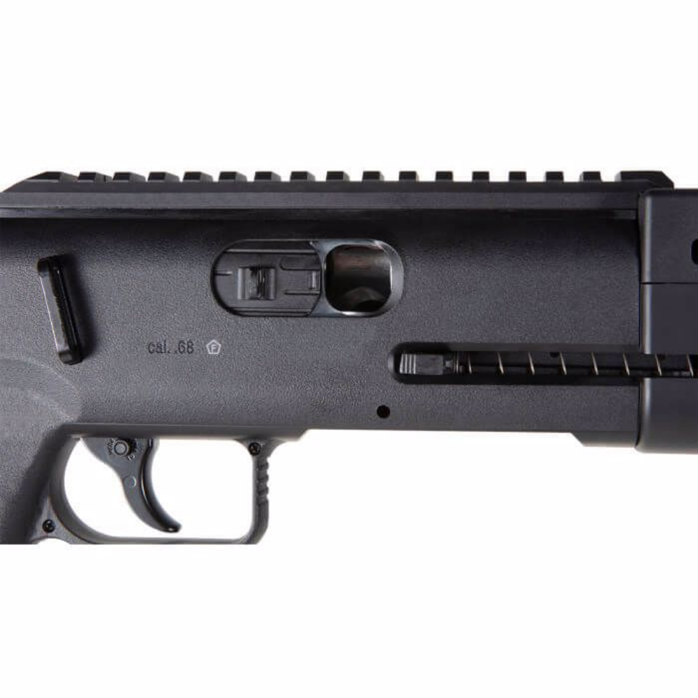 The T4E TB 68 shotgun provides a new level of power and maneuverability in a magazine-fed marker platform. The compact HDB is powered by a single 12-gram CO2 cartridge housed in the grip and pierced via the Quick Pierce charging mechanism. This allows the marker to be stored with ammo in the magazine and CO2 ready to go at a moment's notice. The internal magazine holds 16 rounds of .68 caliber rubber, paint, or dust ball ammo. Fantastic as a recreational paintball gun but the TB 68 is also a great tool to use for law enforcement training or crowd control. The .68 caliber projectiles will travel at 220 FPS and the CO2 cartridge will effectively launch all 16 projectiles before it needs to be changed.