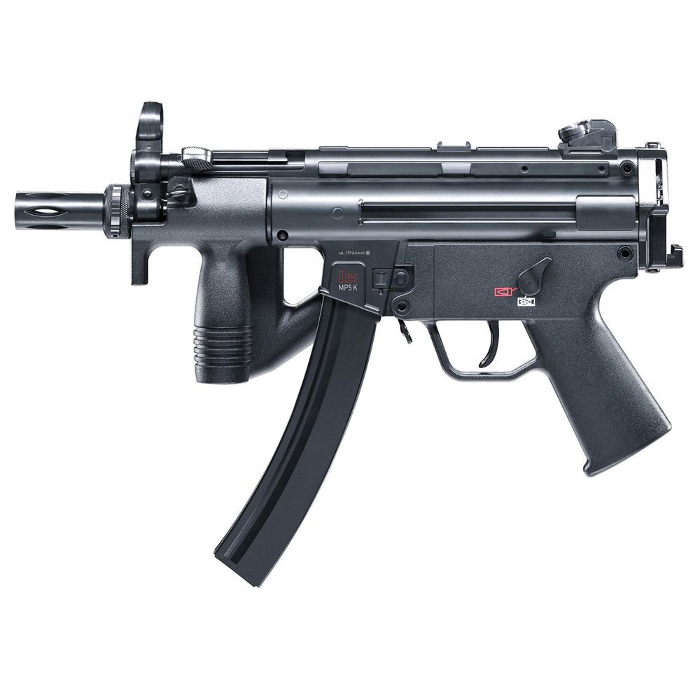 The H&K MP5K-PDW (personal defense weapon) is a 4.5mm BB submachine gun designed by Umarex. While small in size, it packs a powerful punch with a muzzle velocity that exceeds 400 FPS! This CO2-powered BB repeater is an all-day shooter! With a front globe website and adjustable rear sight, it's easy to dial in your aim for target practice.