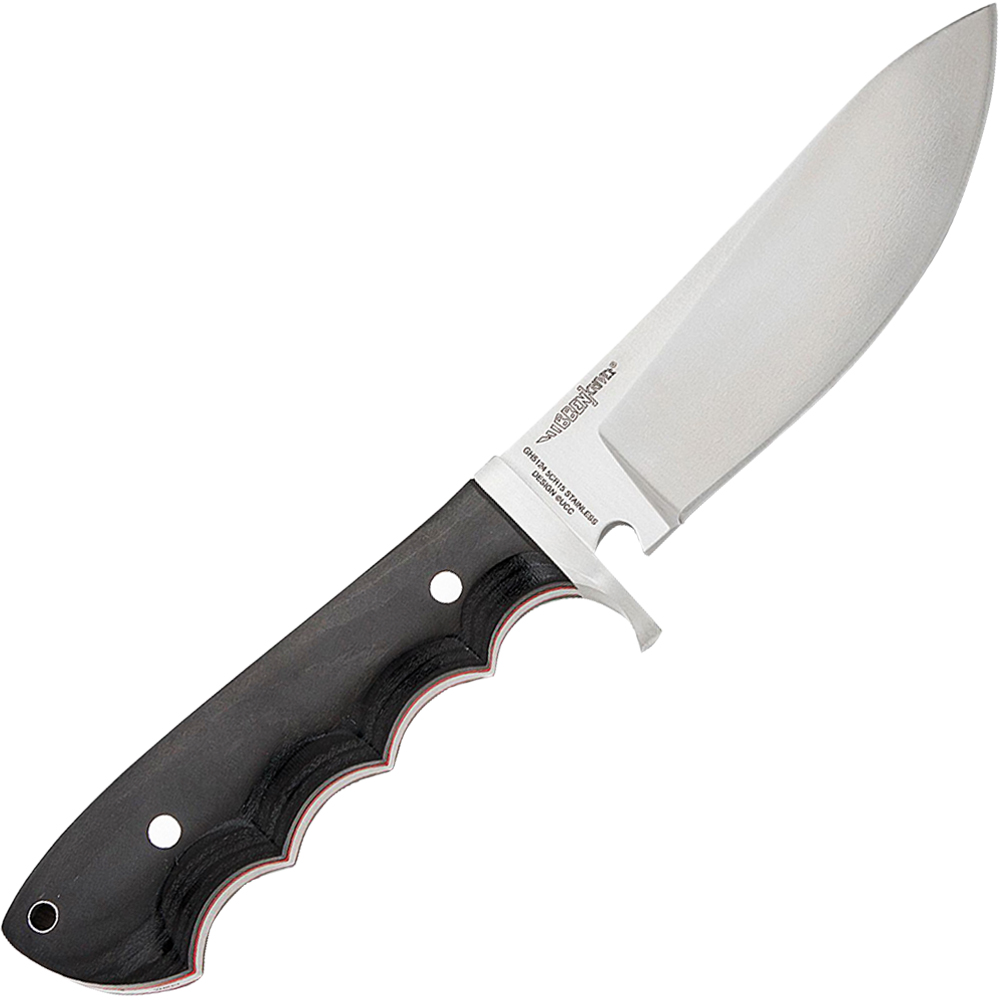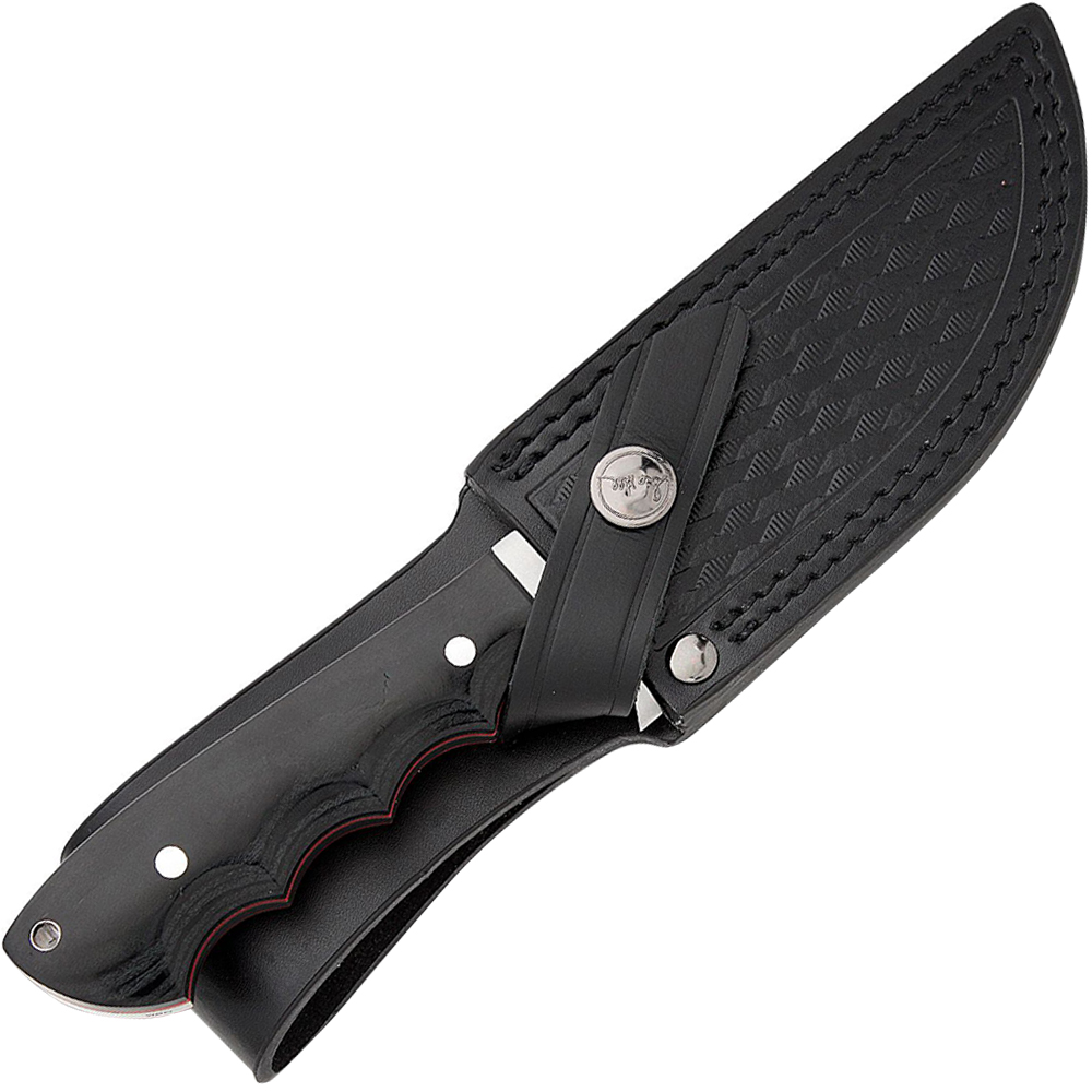 Immerse yourself in the world of precision with the Hibben Pro Hunter fixed blade knife. Featuring a modified drop point blade with a sleek satin finish, this knife guarantees unmatched sharpness for your wilderness adventures. Crafted by the renowned Gil Hibben, this masterpiece is tailored for the discerning hunter who demands excellence. Paired with a striking black leather belt sheath adorned with intricate basketweave design and double top-stitching, this knife makes a bold statement. Not merely a tool, but a symbol of style and functionality, the sheath provides both flair and easy access to your trusted companion. With its stainless steel insert lanyard hole, the Pro Hunter offers versatile carry options to suit any situation. Whether on your belt or secured with a wrist lanyard, this knife stands ready to be your indispensable ally in the great outdoors.