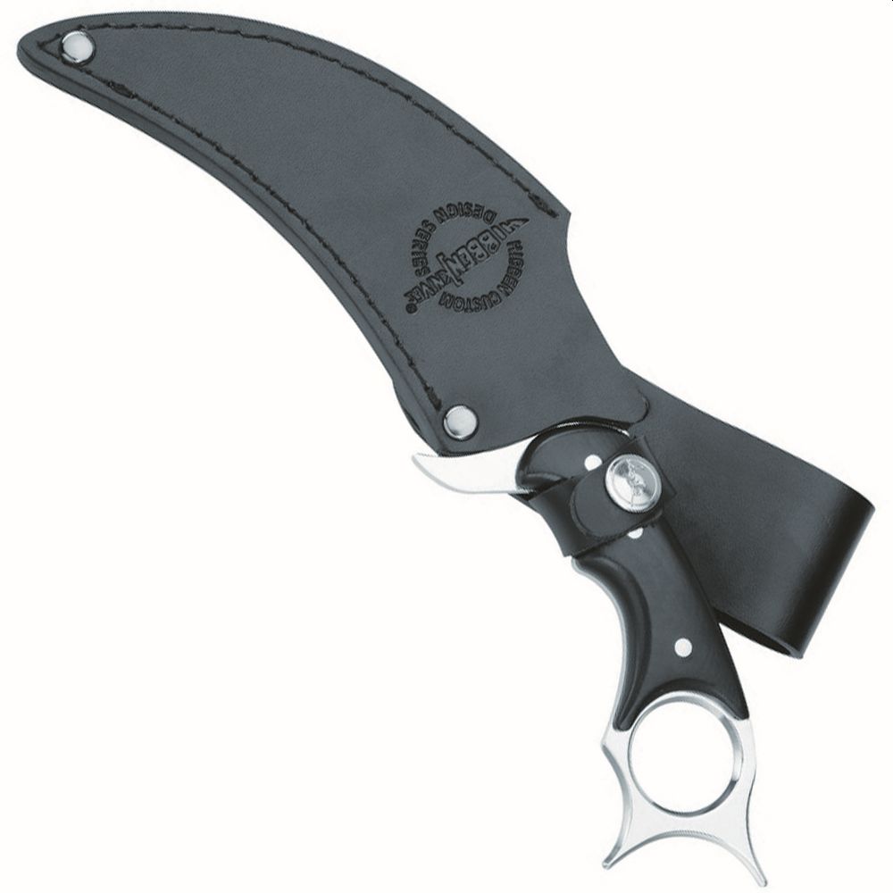 Gil Hibben is a giant in the knife design world and the new Gil Hibben High Polish Karambit illustrates the uniqueness of design that he always brings to the table. The 9 1/4" karambit is constructed of 5Cr15MoV 5 3/8"stainless steel blade and has a handle that features black linen Micarta scales and nickel pins. A premium black leather sheath with the Hibben Knives logo completes the package. When you invest in Gil Hibben pieces, you are getting the cream of the crop in design and quality.