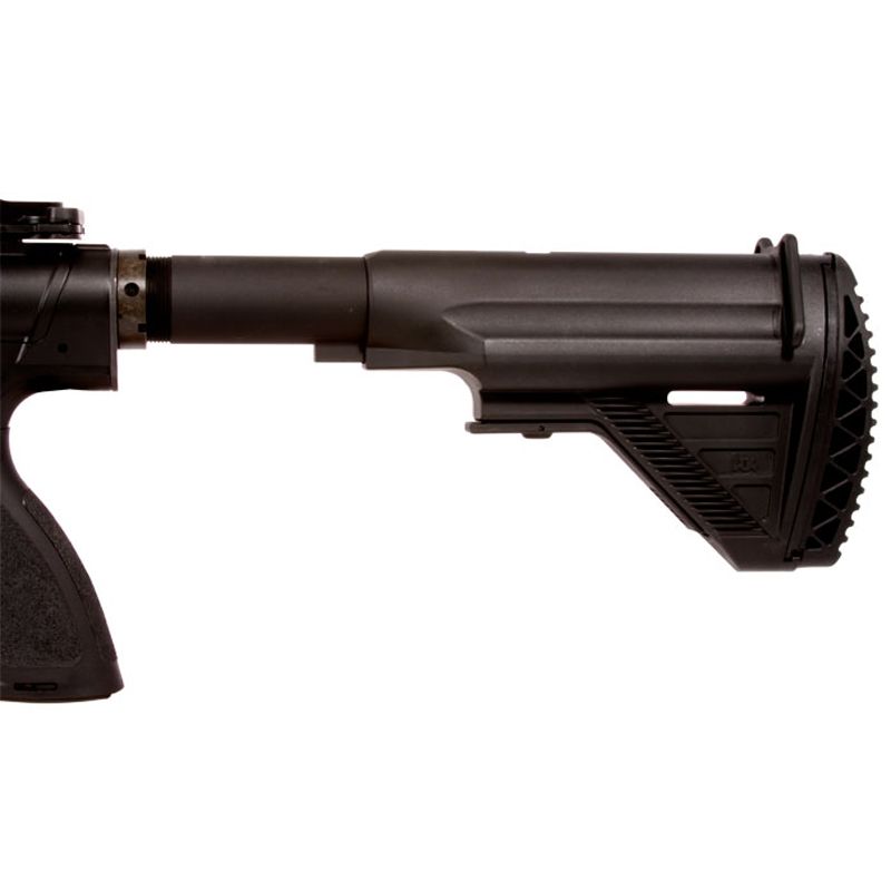 The HK 417 is a licensed, authentic replica. The metal receiver and high torque motor with metal gears and 8 mm bearings contribute to the elite status of the gun. The 140rd magazine provides a realistic look. The adjustable rear sight, and adjustable stock allow for accurate and comfortable shooting. The metal quad rail system lets you accessorize the gun to fit your individual specifications. Perfect for use on the mil-sim (military simulation) battlefield or in tactical training situations.