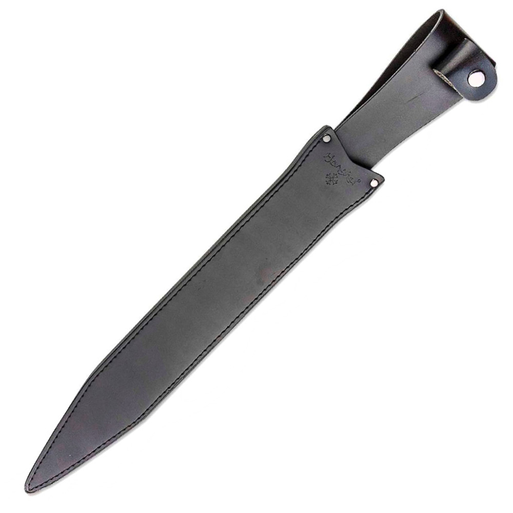 United Cutlery’s popular Honshu line offers sleek, modern elegance with a serious bite! There is no better fusion of traditional ideals with modern innovation than the Honshu Gladiator Sword. It has a keenly sharp, 18 1/4” 7Cr13 stainless steel blade with a fuller and weight-reducing thru-holes. The textured and ridged, injection-molded TPR handle gives you a secure, slip-free grip even when the conditions are wet. The 25” overall sword can be carried and stored in a genuine black leather belt sheath with snap closure strap.