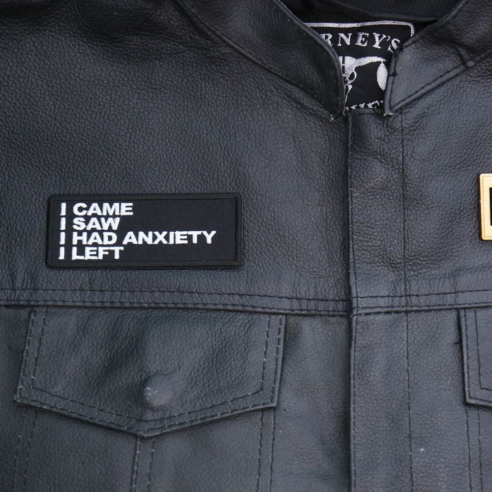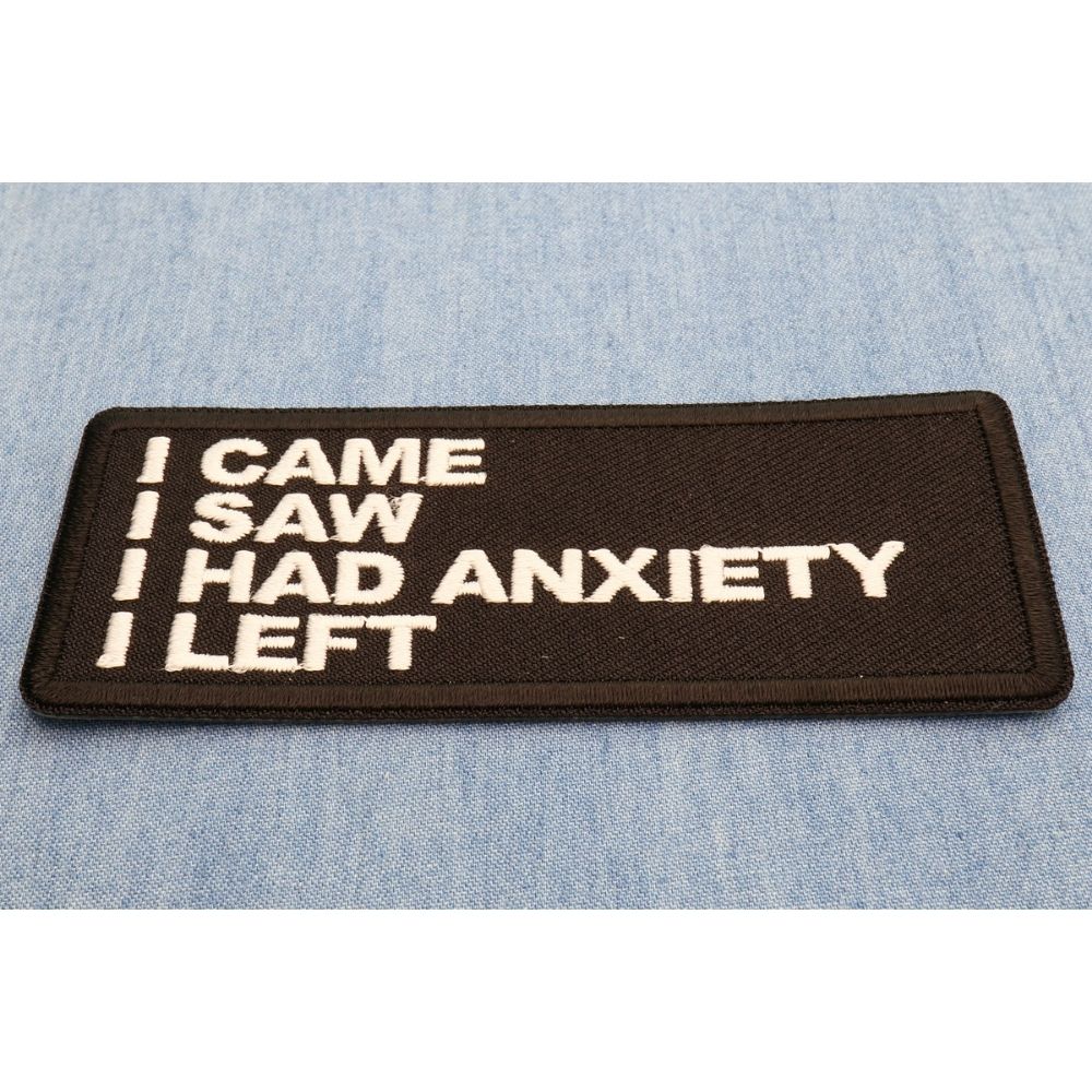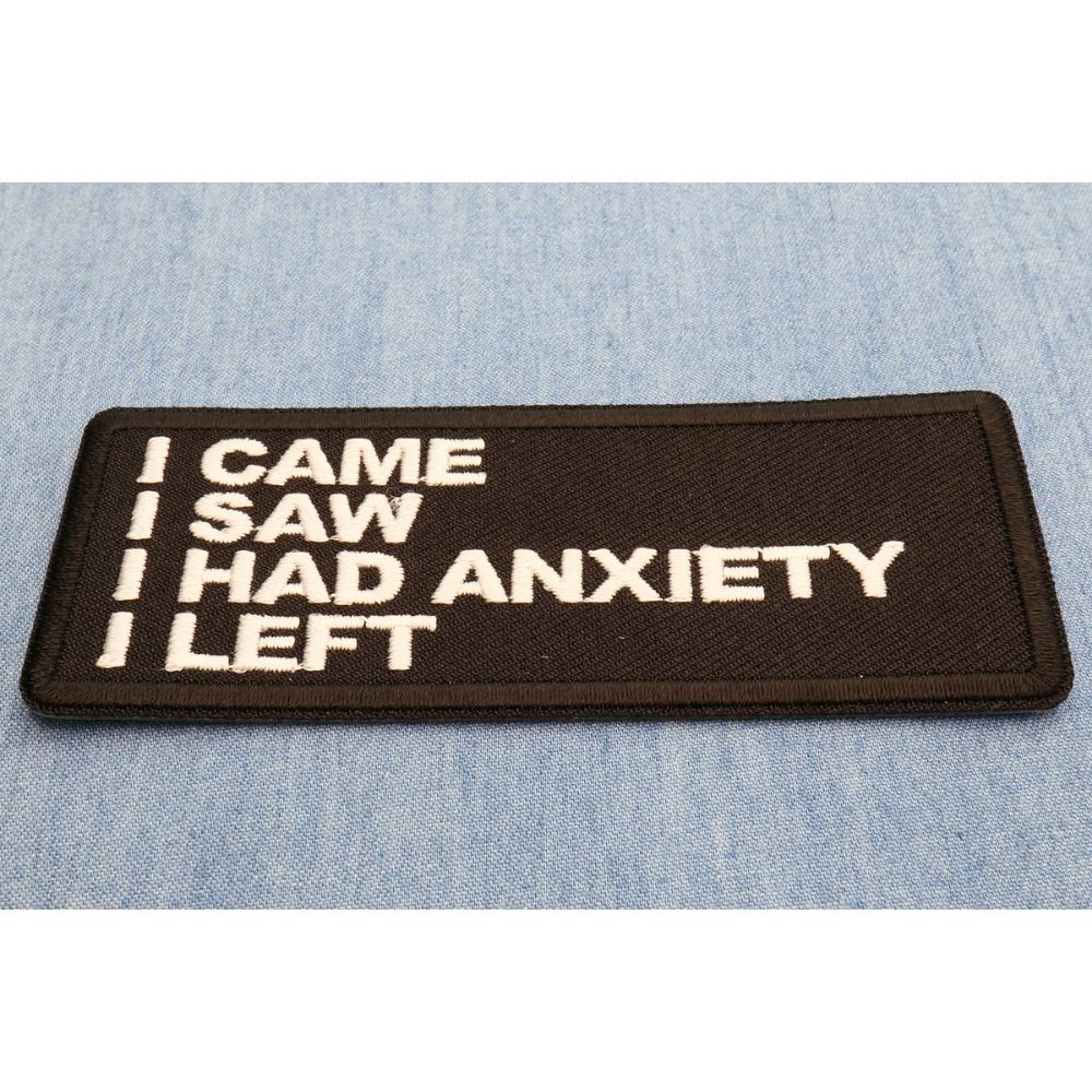 Capture The Essence Of Modern Life With The I Came, I Saw, I Had Anxiety I Left Patch! Measuring 4x1.5 Inches, This Hilarious Black And White Embroidered Patch Perfectly Reflects The Common Struggle With Anxiety. It’s A Great Addition To Your Leather Biker Jackets, Vests, Or Casual Outfits Like Shirts And Backpacks. With Durable Plastic Iron On Backing And Clean Laser Cut Borders, It’s Easy To Apply. Use A Heat Press At 270-290 Degrees Fahrenheit For Optimal Results. Show Off Your Unique Sense Of Humor - Order Yours Today!
