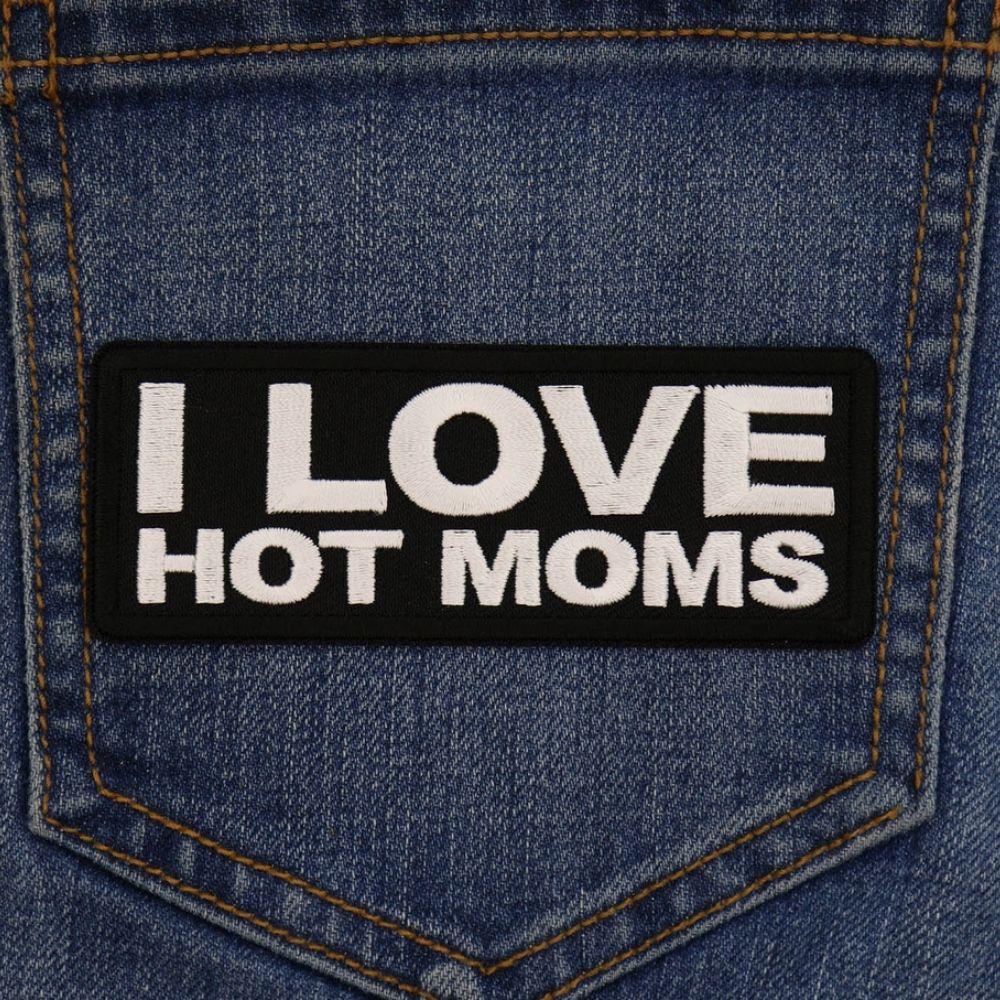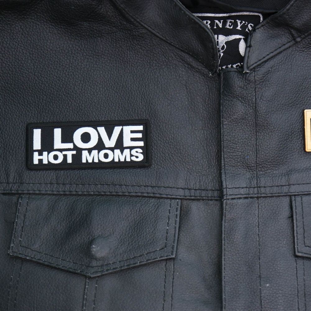 Show Off Your Fun Side With The I Love Hot Moms Patch! Measuring 4x1.5 Inches, This Bold Black And White Embroidered Patch Is Perfect For Those Who Appreciate A Little Humor And Sass. Ideal For Adding To Leather Biker Jackets, Vests, Or Casual Attire Like Shirts And Jeans, This Patch Features Durable Plastic Iron On Backing And Clean Laser Cut Borders. For Best Results, Use A Heat Press At 270-290 Degrees Fahrenheit To Ensure It Stays Put. Celebrate Your Love For Hot Moms - Order Your Patch Today!
