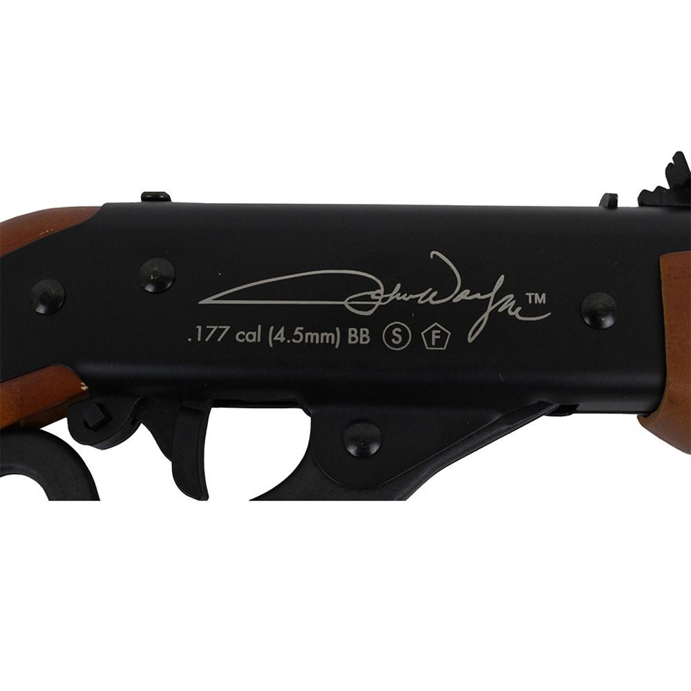 The Air Venturi Lil Duke is a true western justice repeater rifle. This spring-piston BB gun has an authentic lever action cocking mechanism and a huge 500-round BB reservoir for extended plinking sessions. Constructed from stained hardwood and metal, the Lil Duke is engraved with John Wayne’s iconic signature and likeness on the stock, handguard, and frame. The package includes the Air Venturi LASSO mount that allows you to attach a dovetail scope.