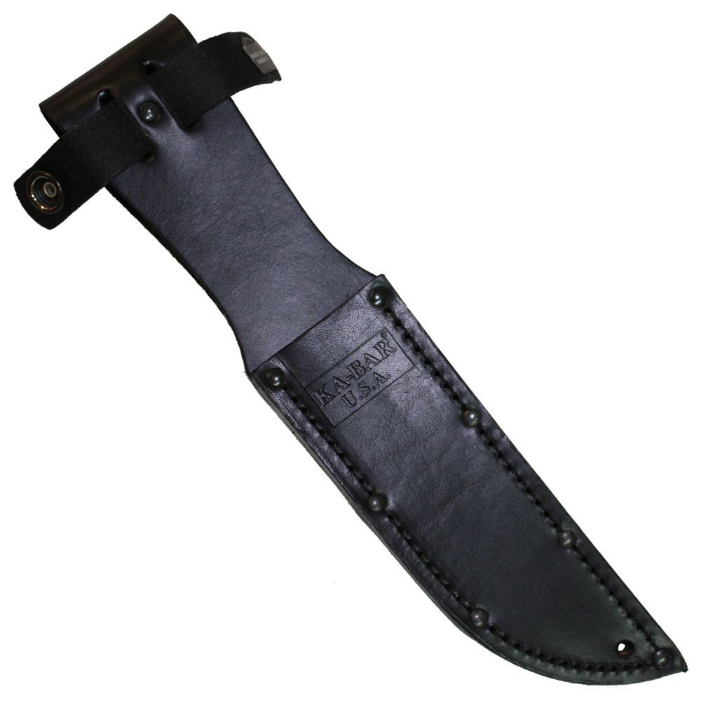 A compact, stout tanto blade is fiercely rugged and appropriate for piercing through the toughest materials. Tang stamped USA. Leather sheath included.