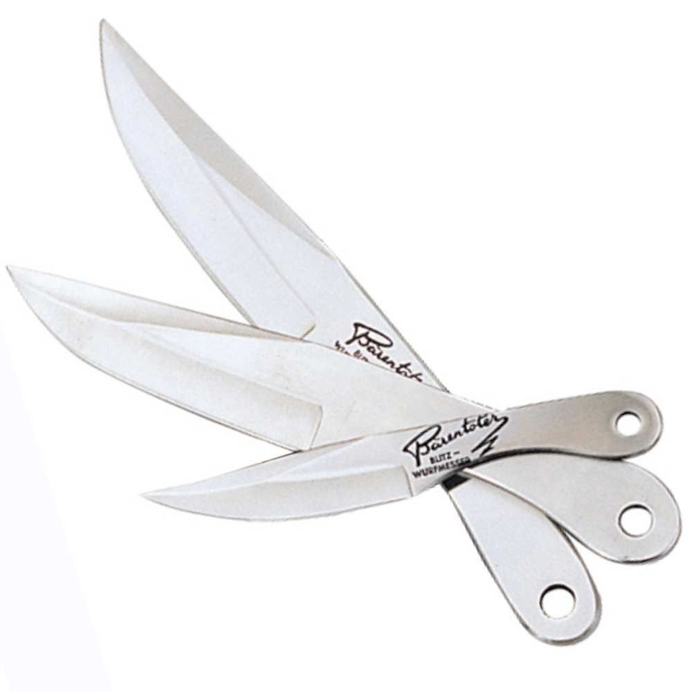 The Stainless Steel Pieces Throwing Knife Set With Web Sheath is a set of three high-quality throwing knives designed for accuracy and precision. Each knife is constructed from durable stainless steel, ensuring excellent strength and resistance to corrosion. The knives have a balanced design, allowing for consistent and controlled throws.