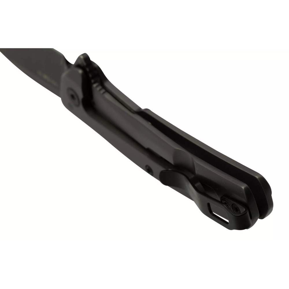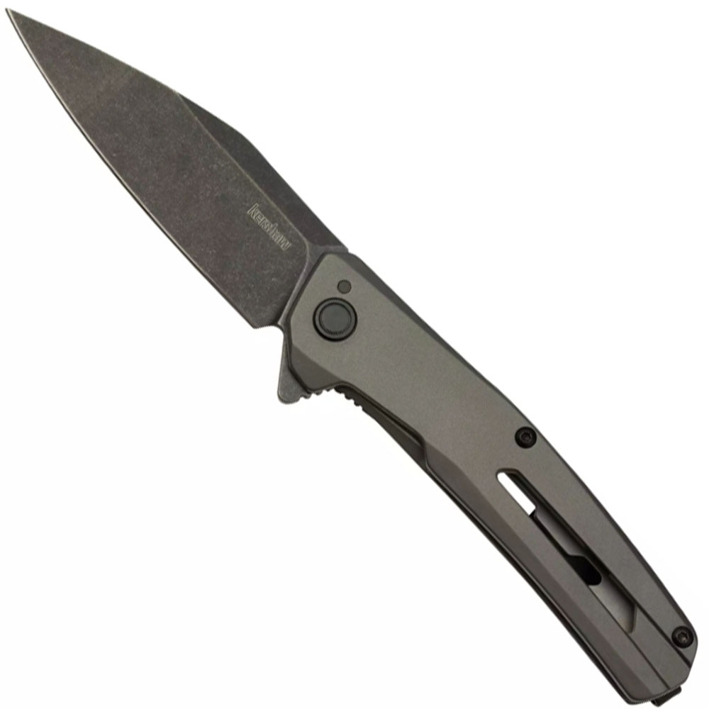 The Flyby soars into the Kershaw lineup with a stylish design and sharp cutting performance. Open the modified Wharncliffe blade effortlessly with assisted opening. Its D2 tool steel is high performance and high edge retention, and the blade shape is an ideal box cutter. Chamfering on the frame lock makes it easy to unlock the blade. A gray PVD handle finish, BlackWash™ blade finish, and black-oxide tube spacers create a stealthy look. This Kershaw earns extra style points with its handle cutout. With so many features, the Flyby is ready for takeoff.