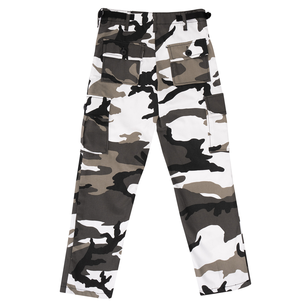 Kids BDU Pants are designed just like our adult BDU pants and have a variety of military-inspired camo colors. Made with a 55% cotton / 45% polyester blend, these camo fatigues are incredibly comfortable, yet super durable as well. Offering multiple pockets for storage; including 2 bellow leg pockets. The kids' camo BDUs feature a zipper fly, adjustable waist tabs, and drawstring ankle ties to ensure the perfect fit and feel for your child.