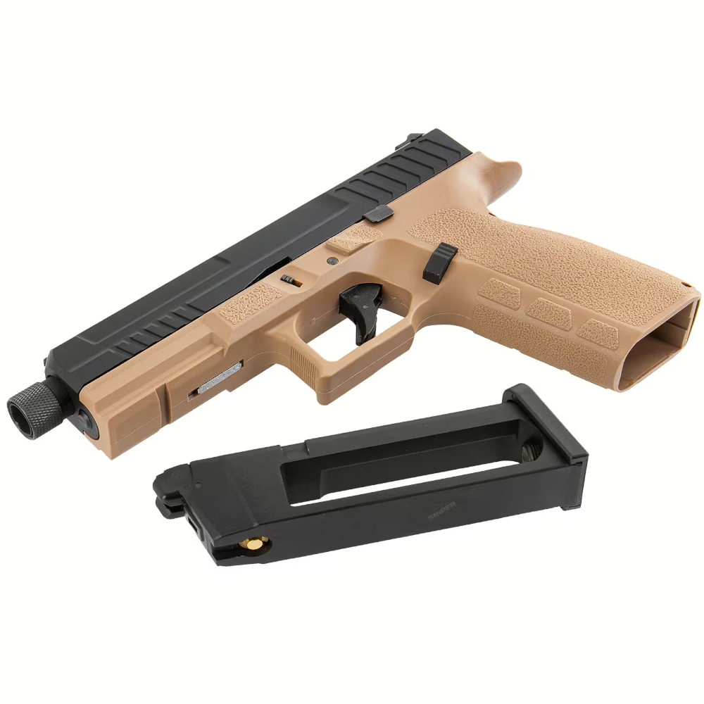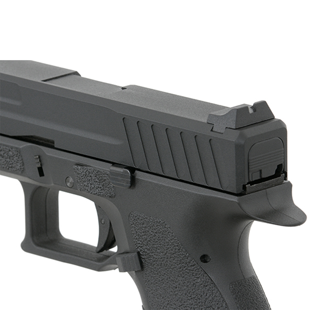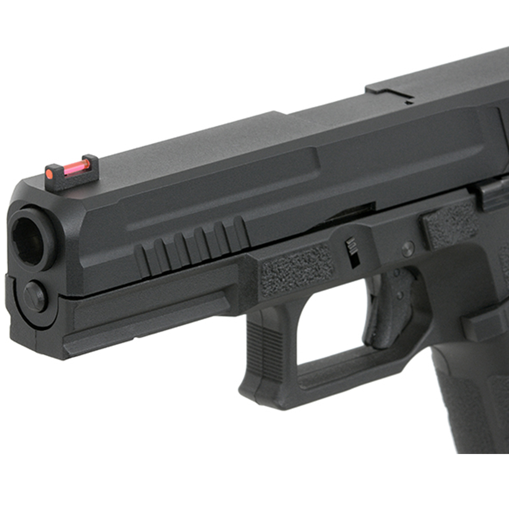 The Pistol was made of high-quality metal and polymer. Metal parts include the slide of the replica while the frame was made of polymer. The top of the slide features comfortable iron sights with a fiber-optic front sight. The sidearm can be easily disassembled for maintenance and cleaning - which is an important advantage because very frequently gas pistols require a lot of attention from their owners.
