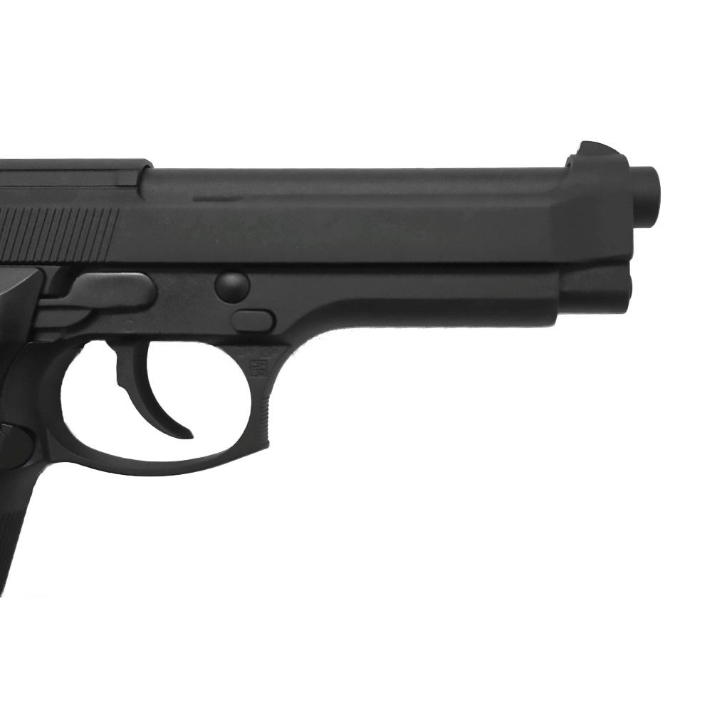 Strike a blow against your enemies with the KJ Works M9 Vertec CO2 Blowback Airsoft Pistol. Like its real steel equivalent, the Beretta M9, this full metal airsoft gun comes with smooth trigger pull in single and double action, and features realistic blowback operation. Shots are fired with accuracy thanks to the front and rear sights and adjustable hop-up system. The semi-automatic pistol weighs 900 g (2 lb) and comes with ambidextrous safeties and vertical front and backstrap grips. Holds 25 rounds of 6mm airsoft BBs.