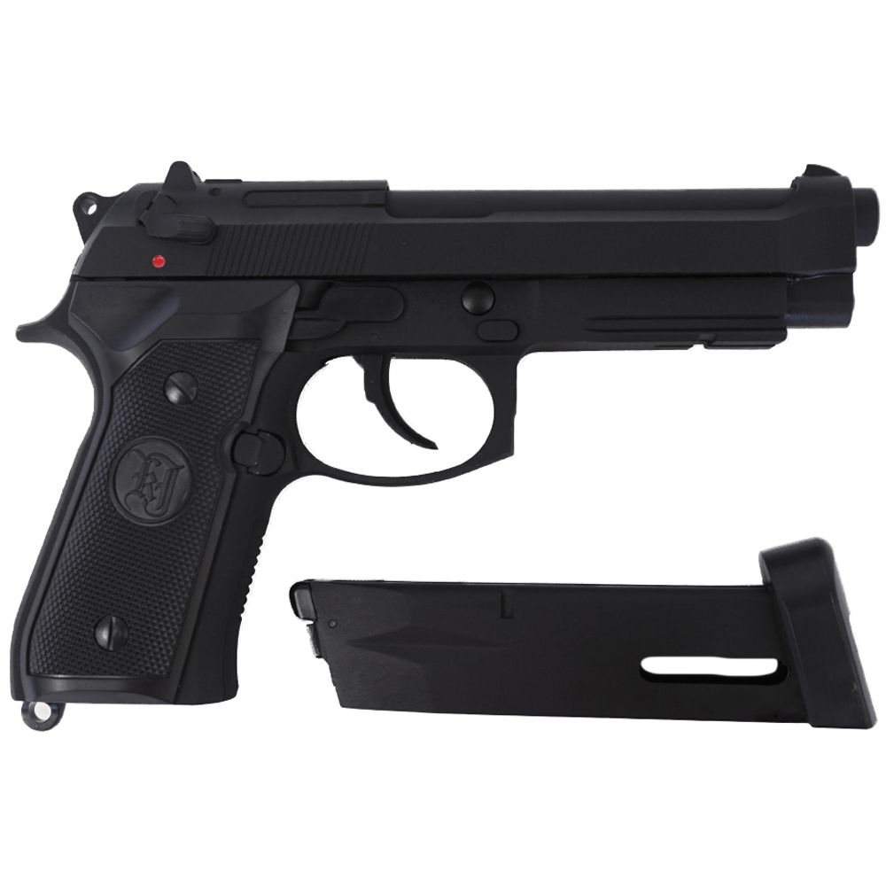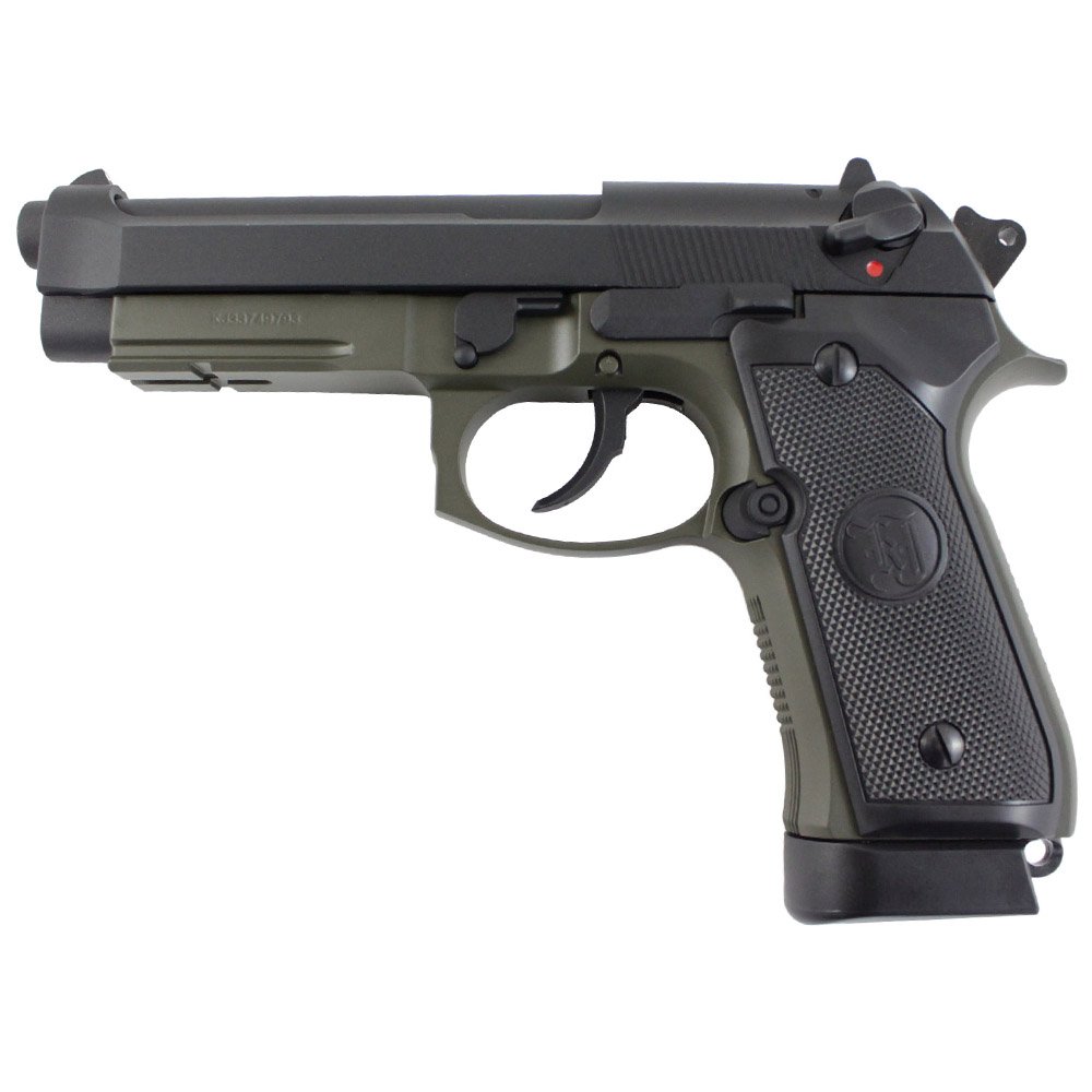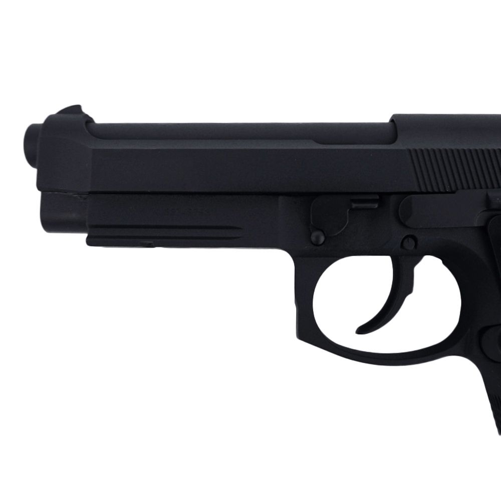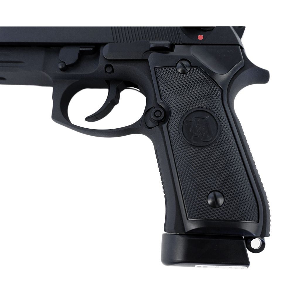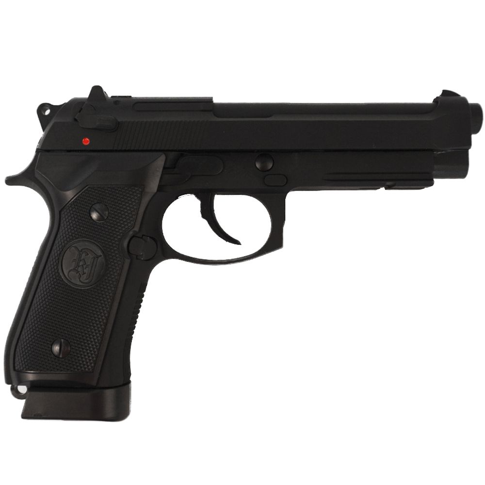 Modern warfare has been revolutionized by Beretta’s M9 tactical pistol. The M9A1, a revamped version of this classic, is the basis for the KJ Works M9A1 CO2 Blowback Airsoft Pistol. This excellent replica features quality metal workmanship, realistic blowback action, and an integrated accessory rail. Checkered texturing on the front and backstrap provides a superior grip performance. This semi-automatic pistol weighs 900g (2 pounds) and has a 25-round capacity for 6mm airsoft BBs.