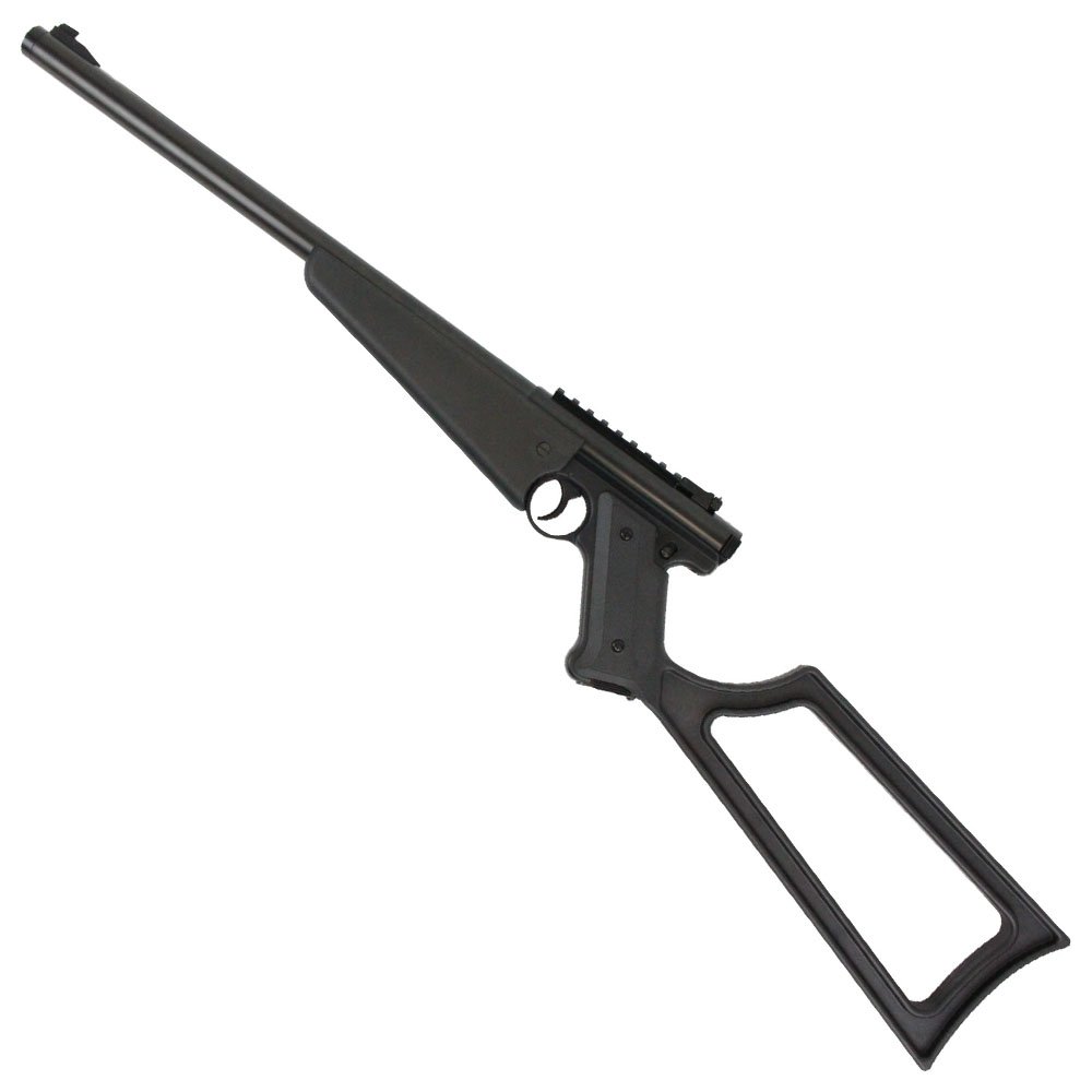 The KJW MK-1 Carbine is a simply designed rifle with outstanding performance. An extended 17-inch barrel and gas-efficient non-blowback system allows for a staggering 450+ FPS muzzle velocity. There are no fire selectors, charging handle, dust covers, or bolt catches to get in the way or slow you down. A skeletonized full stock provides rigid support without adding extra weight. The rifle can be upgraded with scope and silencer attachments to become a full-fledged sniper rifle.