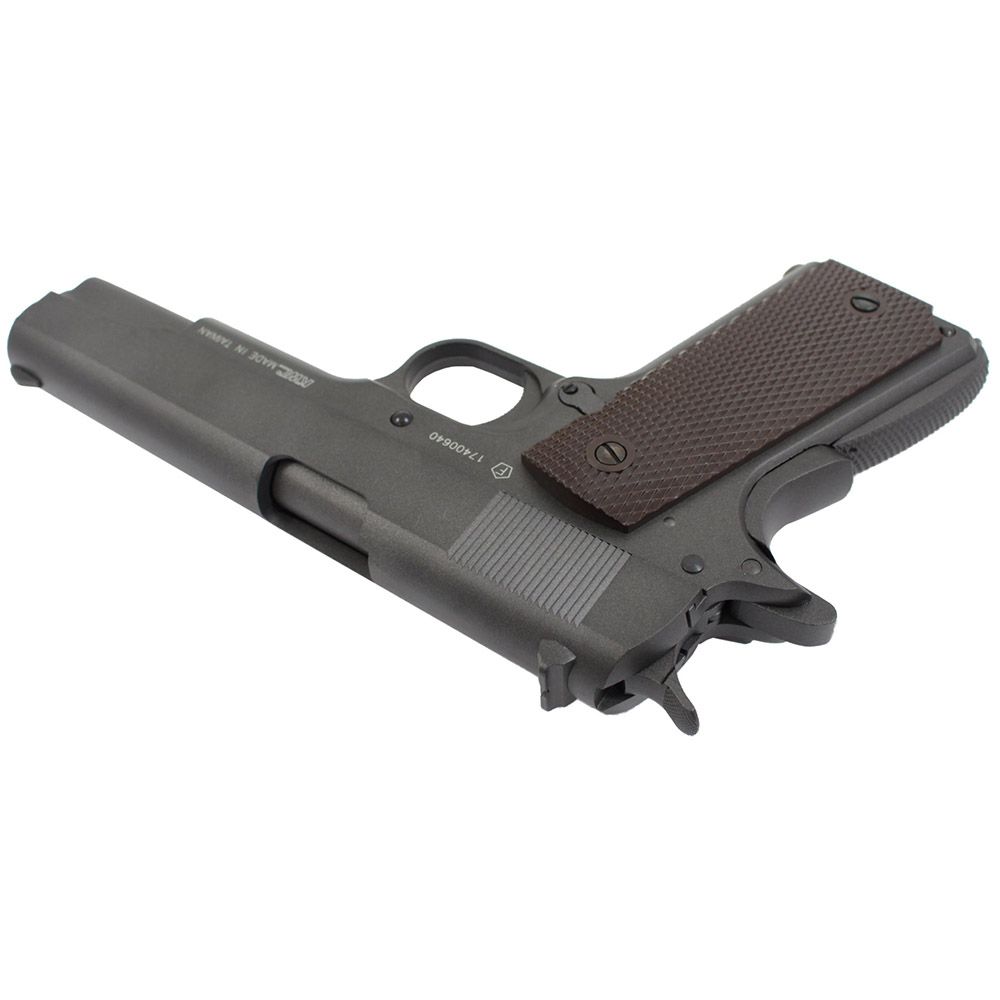 If you're looking for a realistic replica of the Tanfoglio Witness 1911, then KWC's BB Pistol version is as close as it gets. This authentic replica features a full metal body with a functional slide that snappily blowsback for a realistic shooting experience. The full size metal drop out magazine hold 17 rounds, and is housed in a textured handle with checkered grips to keep you shooting comfortably. It can also be field stripped, just like the real 1911, so cleaning and maintaining the gun is no hard feat.