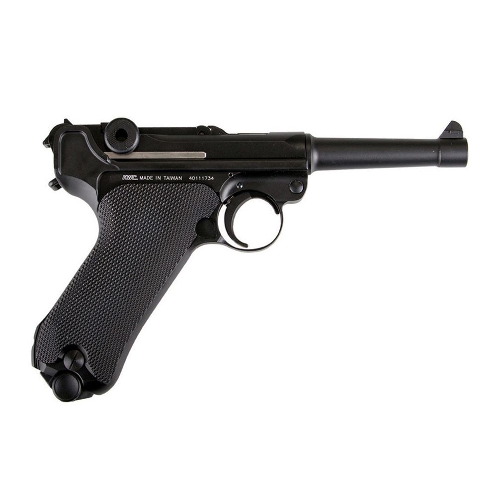 This KWC 4.5mm BB pistol is an exact replica of the iconic German-made P08 Luger. Like the real steel gun, it operates with a unique toggle-lock blowback system that provides powerful kickback and locks back on the final round. It has a durable metal construction with textured polymer grips that weighs in at a hefty 1.8 pounds, just a few ounces shy of the real thing. With a nearly identical inner-mechanism, this gun feels and fires just like a Luger should.