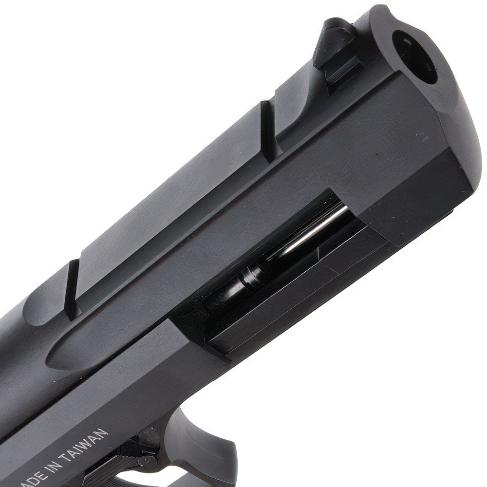This weapon is not for the faint of wrist. Powered by CO2, it clocks in at a very reasonable 400-450 FPS to kick like a mule on steroids and probably as loud as one too. With a hefty metal slide, it has the mass and weight distribution to make it feel and move right in your hand, offering an impressive display of performance.