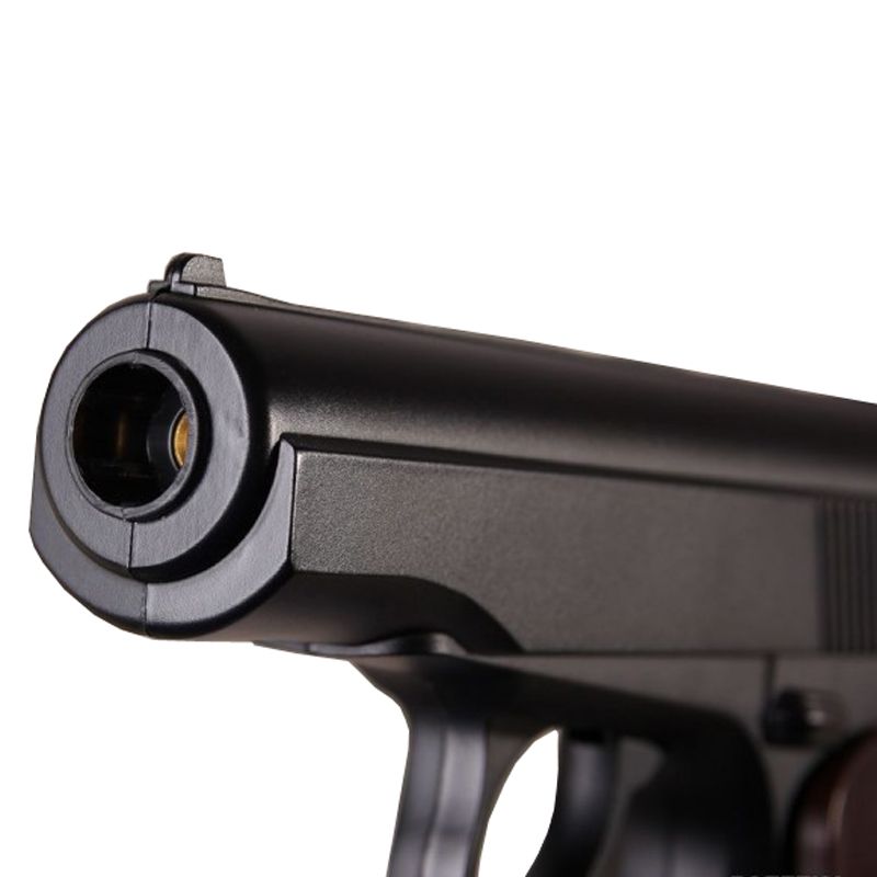 The KWC Makarov PM blowback BB gun is a must-have replica of the classic Russian firearm it was modeled after. It features a heavyweight, durable metal construction with textured ABS plastic grips and a realistic gun metal grey finish. The full size drop free magazine houses the CO2 and 15 rounds of 4.5mm BBs. It also boasts a fully operational slide that provides realistic blowback action during firing.