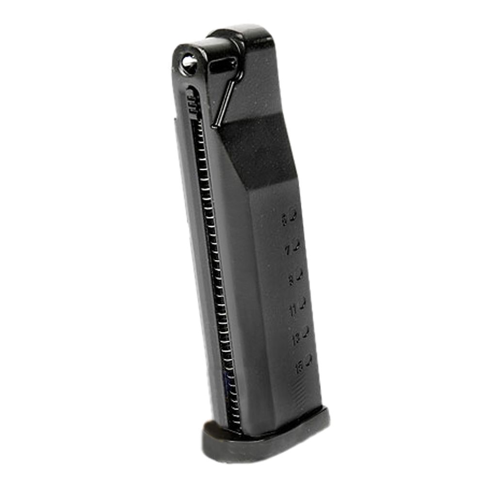 The M&P 40 BB Pistol 19rds Magazine is drop free so you can let it fall easily from your gun and slide in another mag in one swift motion. The magazine holds up to 19 steel BBs and the CO2 cartridge.