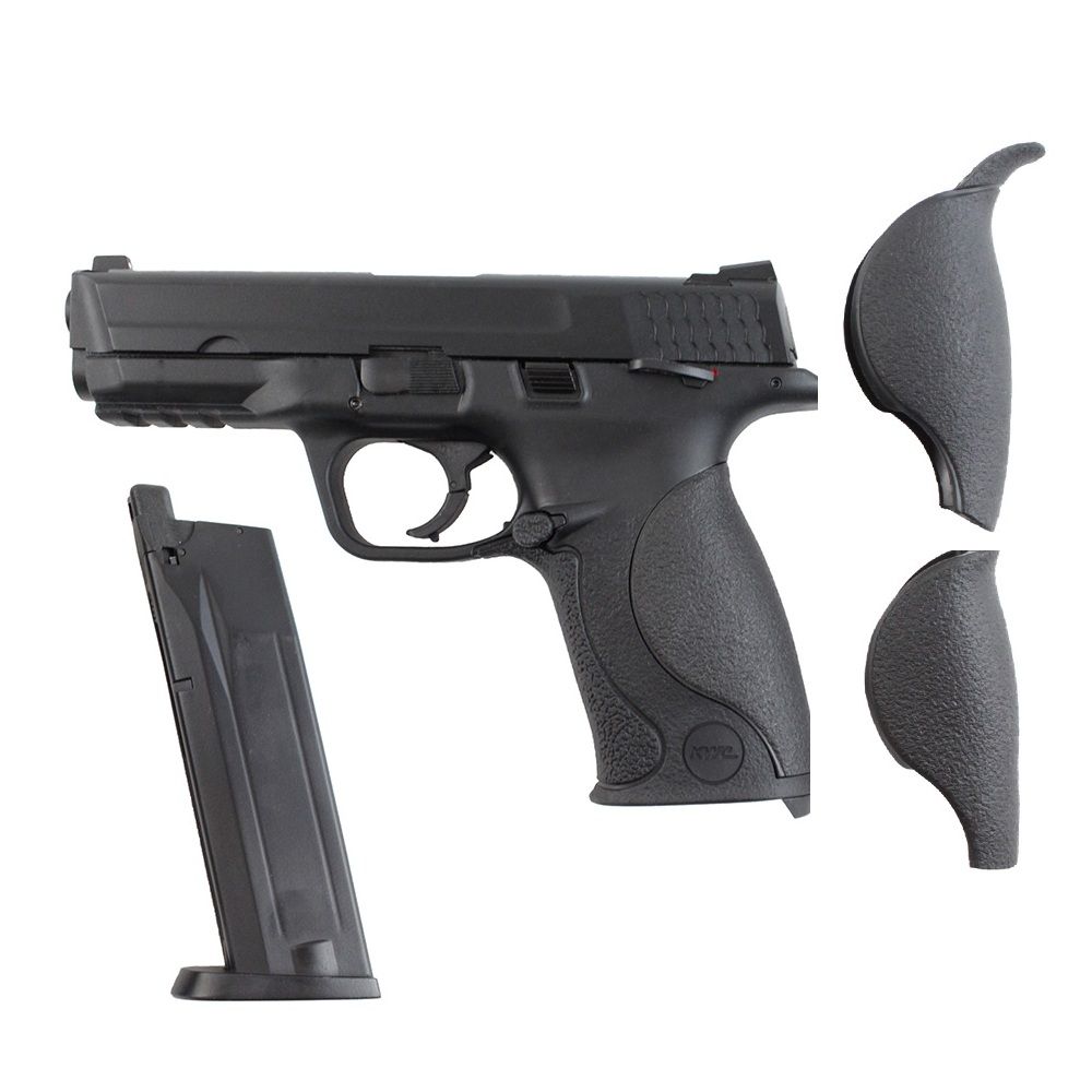 This CO2 BB pistol is a 1:1 scale replica of the Smith and Wesson M&P 40. Just like the real gun, its constructed with a light weight polymer frame and a metal slide with a realistic ejection port, through which the hop-up can be adjusted. This CO2 powered gun has a powerful blowback system and a slide stop that locks when the magazine runs empty. Other features include a 20mm weaver accessory rail, scalloped slide serrations, and field strip capability. The package includes three interchangeable back straps to customize the grip.