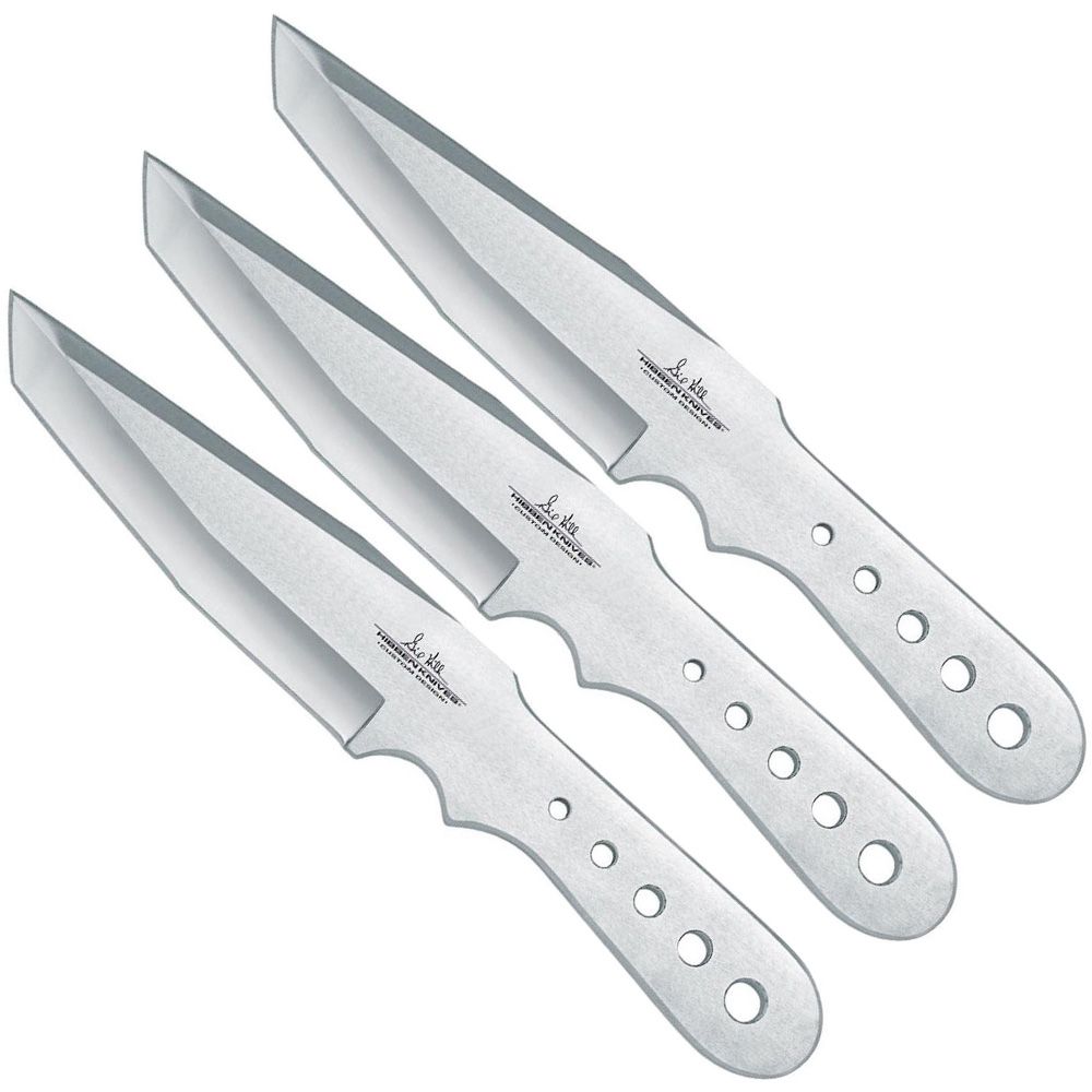 United Cutlery GH5003 Warrior Throwoing Knvies, Large Triple Set, Leather Sheath - Constructed from one solid piece of 420 stainless steel and expertly designed by the master, Gil Hibben. The extra cuts and holes add a fantasy flare.