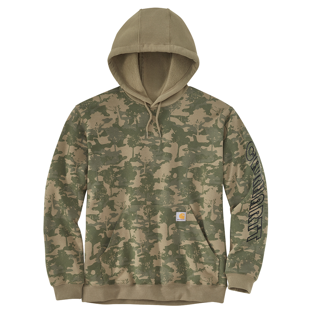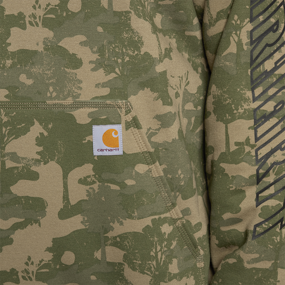 Camo complements everything. This men's Carhartt sweatshirt is a daily essential. Its midweight cotton-blend fleece wards off the cold, whether you're at work or enjoying the weekend. Designed for a loose fit, it offers ample space for movement.