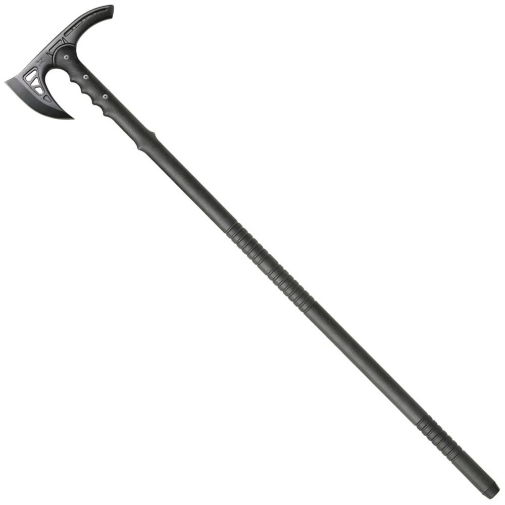 The M48 Survival Axe is the perfect companion for hiking and camping. With a 37" overall length, it's great as a walking staff while camping. A cast 2Cr13 stainless steel blade is razor sharp and can chop through saplings with ease. A 30% fiberglass handle is nearly indestructible and the axe head is attached to it with three separate metal bolts. Includes a snap-on rubberized blade cover for when not in use for cutting. 4 1/2" blade; 37" overall.