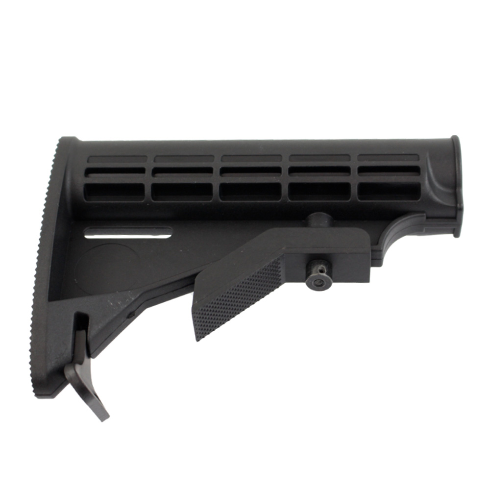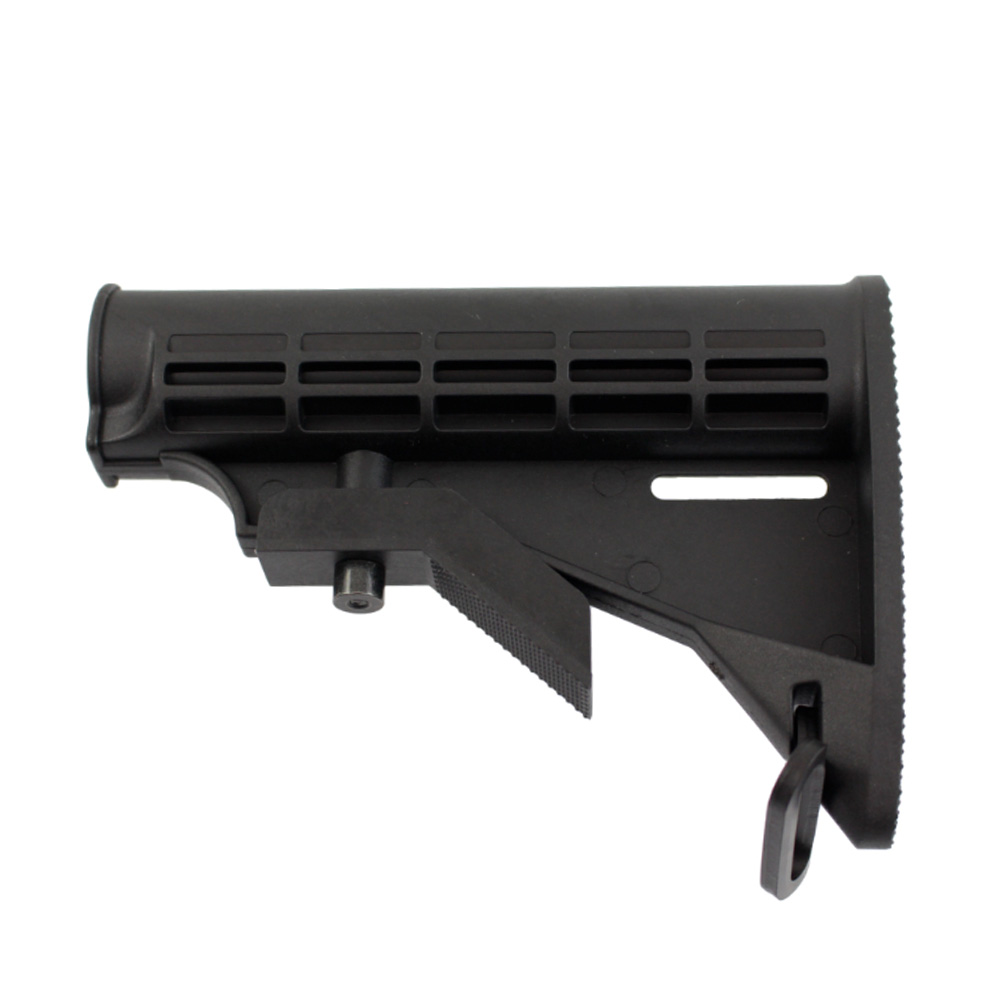 The M4/M16 Retractable Stock is a highly versatile and durable upgrade for your rifle, offering enhanced comfort and adaptability in any tactical scenario. Designed to fit M4 and M16 platforms, this stock features a six-position adjustable length, allowing for rapid adjustments to suit various shooting styles and body types. Constructed from high-strength polymer, it delivers lightweight reliability without compromising on toughness. The ergonomic design includes a textured buttplate for improved shoulder grip and a built-in sling attachment point for added convenience.