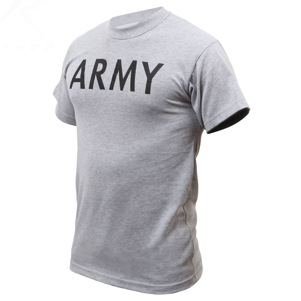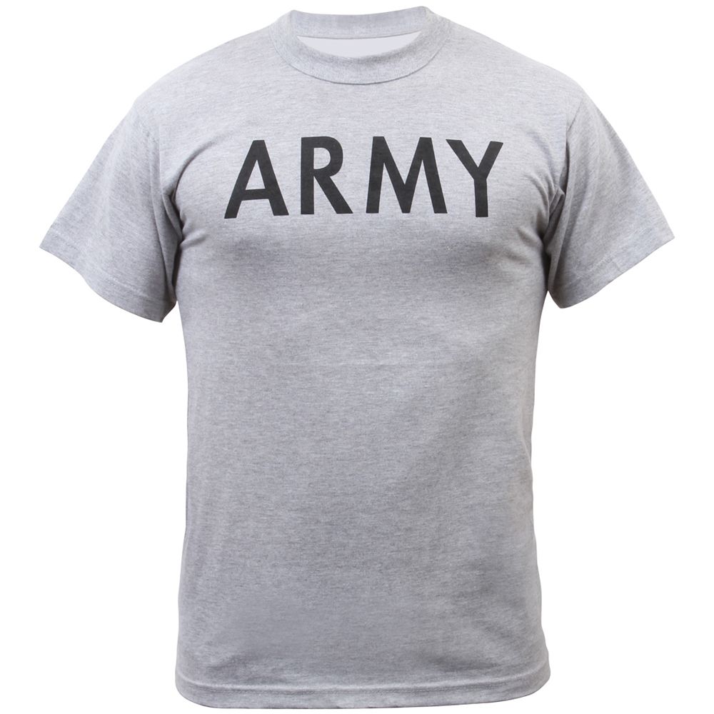 Grey Physical Training T-Shirt is constructed with a heavyweight poly/cotton material, with a Army, Marines, Navy or Air Force print. Great for training, workouts or as an everyday shirt. Also, be sure to checkout our matching PT shorts.