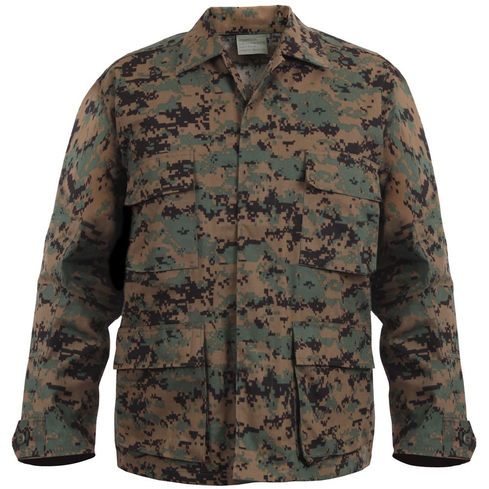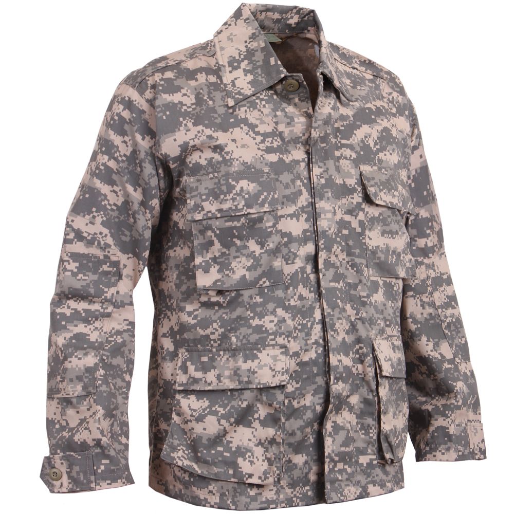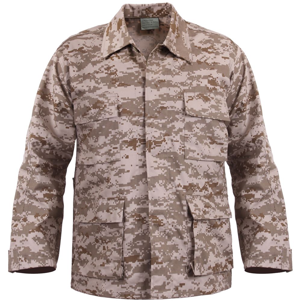 Mens Digital Camo BDU Shirt is made with the blend of polyester and cotton. 45% polyester and 55% cotton makes it soft and smooth on your skin. The strong construction makes it durable and long lasting. The woven shirt is much preferred by young adults for its design and style. The shirt is provided with a button front which makes it more comfortable to wear. The reinforced elbows and double stitched seams are added features. It has four pockets which are quite large in size. Two pockets on either side of the shirt. BDU shirt is normally used by military people, but common civilian prefer it for its military design and style.