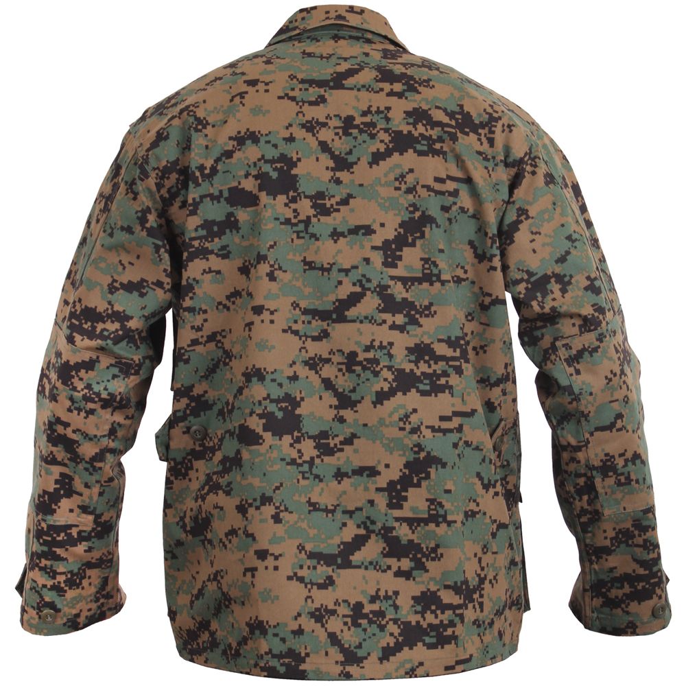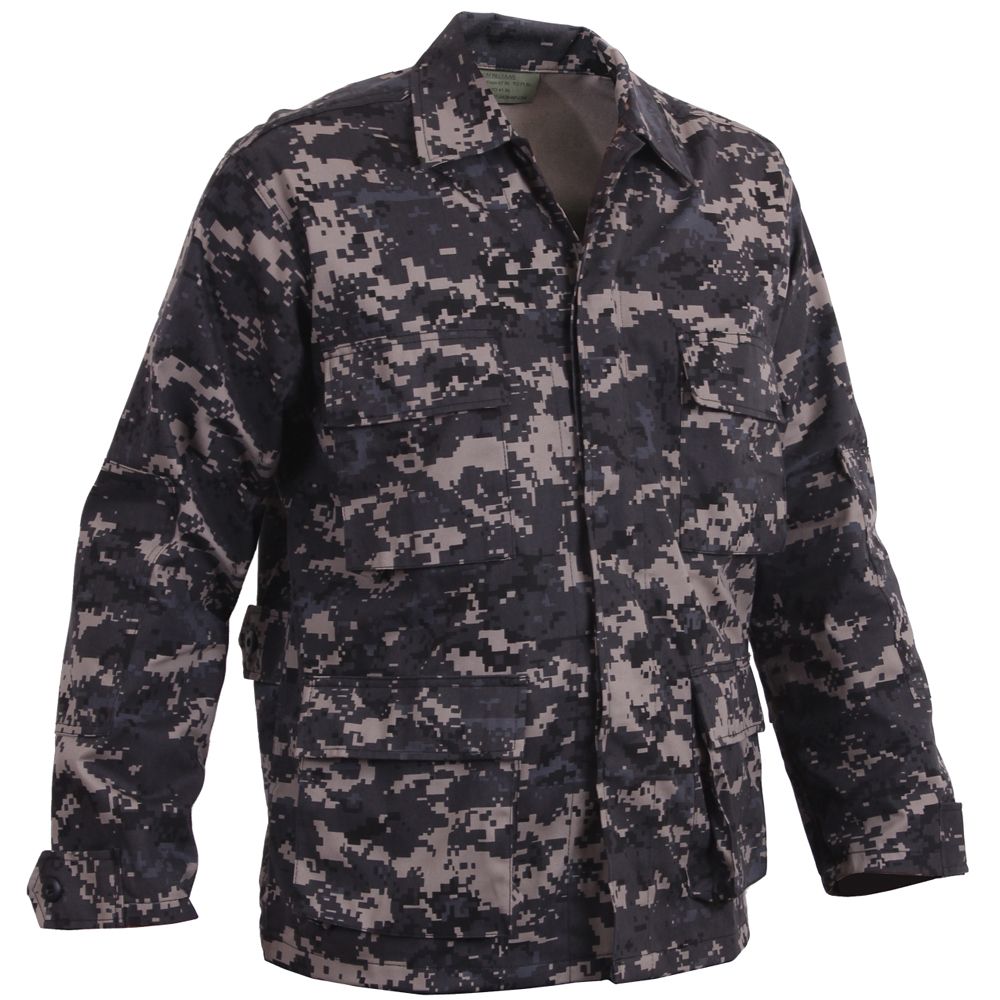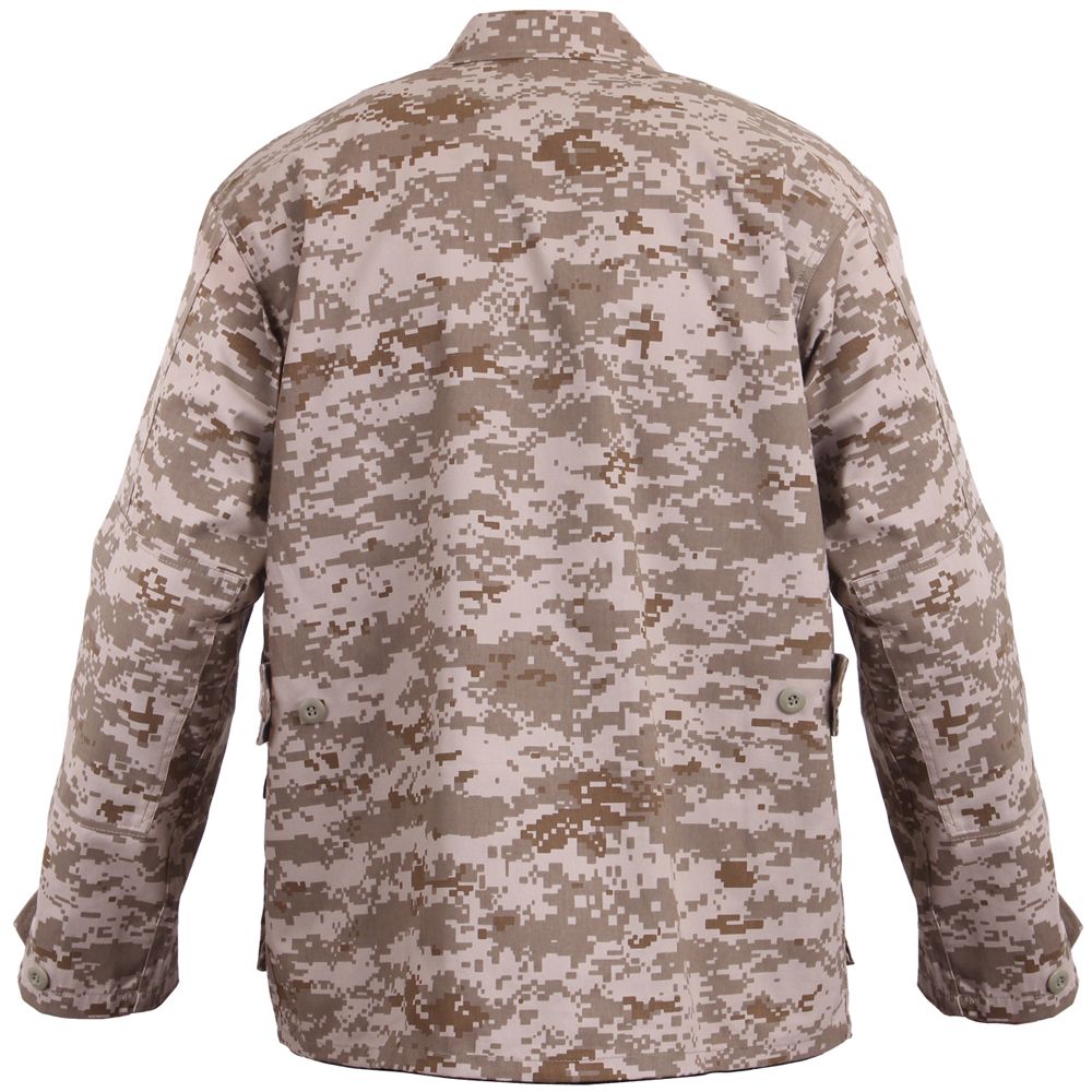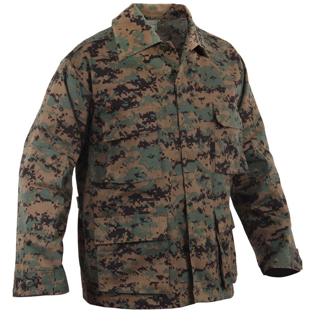 Mens Digital Camo BDU Shirt is made with the blend of polyester and cotton. 45% polyester and 55% cotton makes it soft and smooth on your skin. The strong construction makes it durable and long lasting. The woven shirt is much preferred by young adults for its design and style. The shirt is provided with a button front which makes it more comfortable to wear. The reinforced elbows and double stitched seams are added features. It has four pockets which are quite large in size. Two pockets on either side of the shirt. BDU shirt is normally used by military people, but common civilian prefer it for its military design and style.