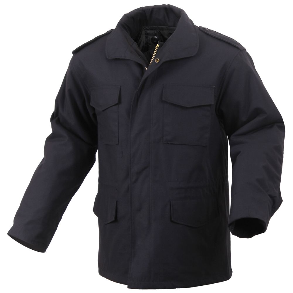 Mens M-65 Field Jacket is something you can count on for protection as well as style. The jacket is made from polyester/cotton twill which is water resistant. The jacket comes with a concealed hood which can be used if and when required. Apart from this, the jacket also has several other features such as a heavy brass zipper, bottom drawstrings along the waist, epaulets and a snap-up storm flip. The four snap up pockets can be used to carry around the stuff you need to be handy. Again, the jacket also has a quilted bottom-liner for extra protection. This liner can be removed when not required. Hook and loop cuffs make it possible to attach gloves as well.