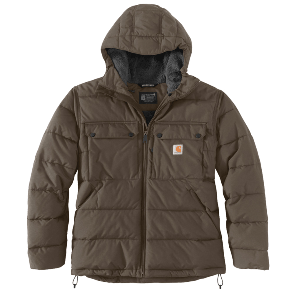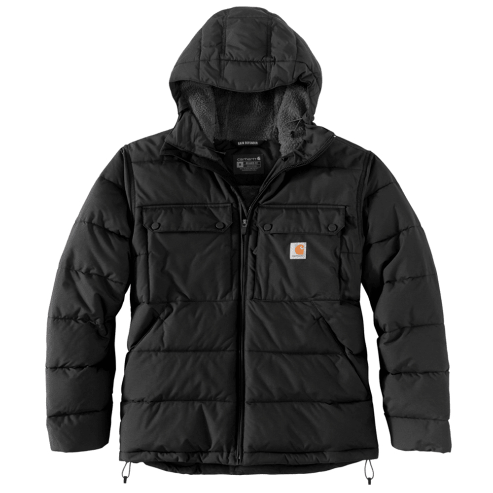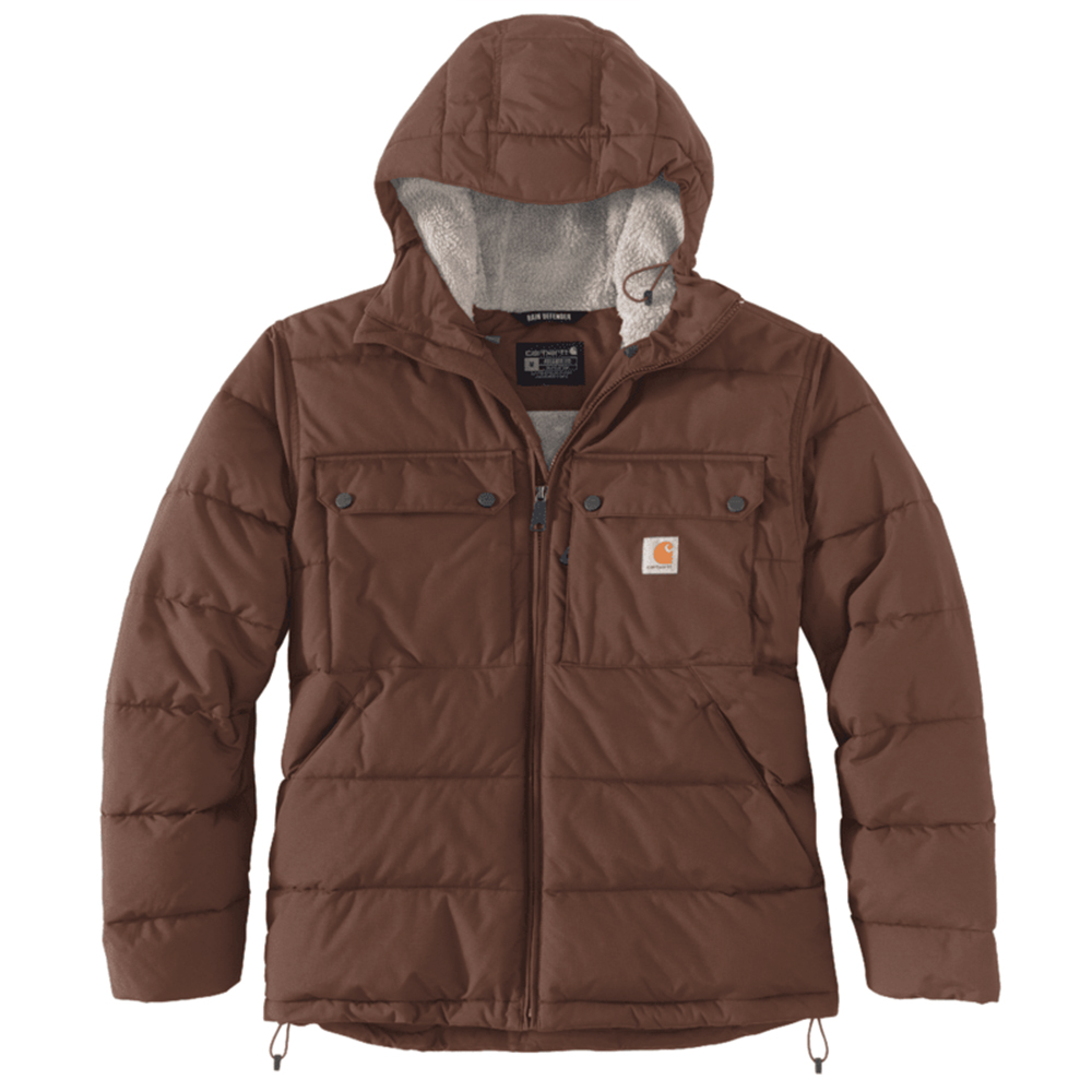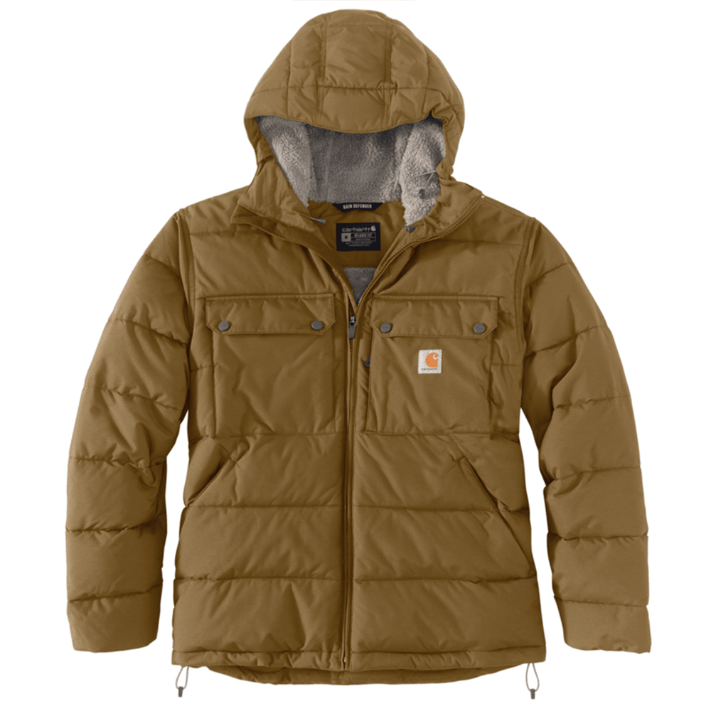 When it comes to wet weather, it's all about the right gear. This men's jacket offers insulated warmth to keep you working. Wind resistant and water repellent, it comes equipped with synthetic down insulation plus a sherpa fleece lining in the upper body to seal in heat. Pockets inside and out offer plenty of storage.