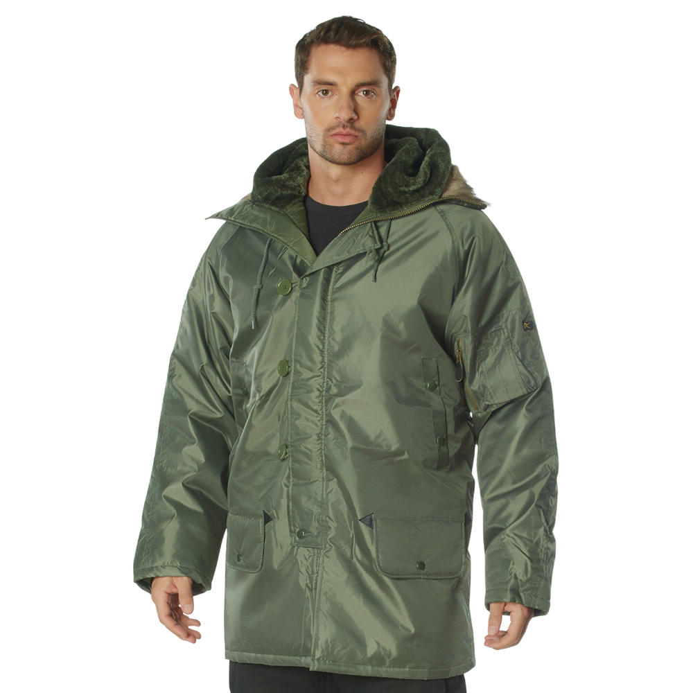 Stay warm and ready for any winter challenge in the Mens N-3B Snorkel Parka. Built for cold weather, this military-inspired coat features a heavy-duty 100% nylon outer shell with a water-repellent finish, plus a thick polyester lining for maximum insulation. The faux fur-trimmed snorkel hood offers additional protection against wind, snow, and rain, while the adjustable design ensures a snug fit. Designed with rugged conditions in mind, this parka includes a zippered utility sleeve pocket, front snap pockets, and a 4-button storm flap closure to seal in warmth. Whether you're trekking through snow or navigating the urban cold, this parka has your back.