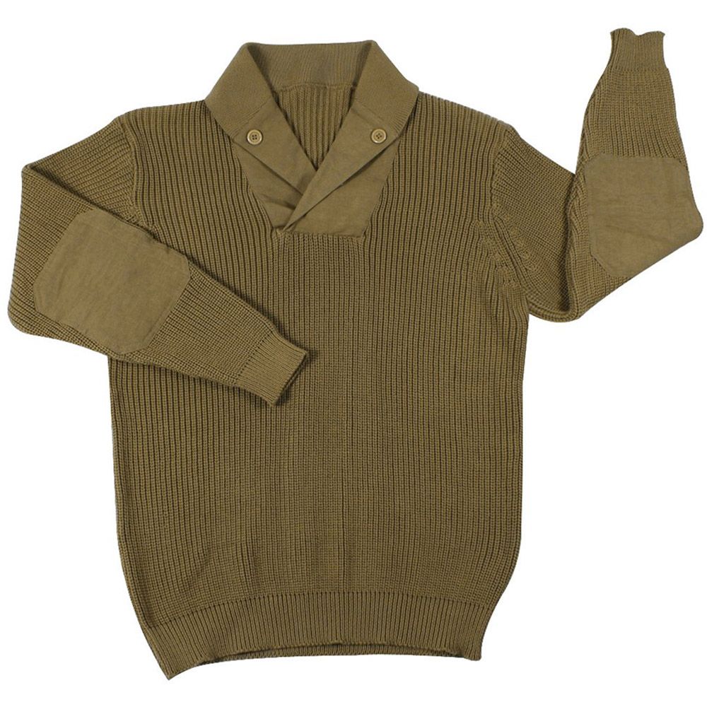 Mens WWII Vintage Mechanics Sweater Features The Styles Of A Vintage World War II Mechanics Sweater With Twill Elbow Patches and Button Placket With Added Button Details; Ribbed Cuffs, Collar And Waist. The Vintage Sweater Is 100% Knit Cotton and Washable.