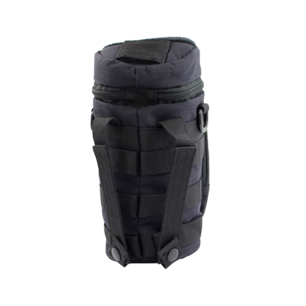 Molle Compatible Water Bottle Pouch is an ideal hydration accessory for the military and tactical market. The pouch will fit most water bottles (the main water bottle pouch is 10.5" Tall 4") and securely fastens to any MOLLE attachment system. The pouch has a front zippered pouch with MOLLE loops on the front, a zipper closure flip top, MOLLE loops around the entire pouch, and two 6" MOLLE straps on the back. The water pouch also has D-rings on each side a straw hole on the top and a drain holeSpecifications: