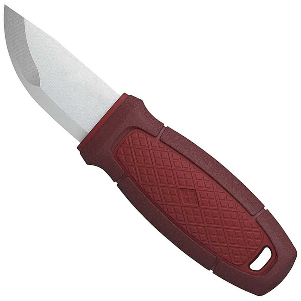 The Morakniv Eldris will amaze you with its versatility. This pocket-sized knife has a precision clip point blade with a Scandi grind that excels in precise, detailed cutting. The spine is also ridge ground for use with a fire starter. Constructed from durable stainless steel and polymer, its fit for hard outdoor use on hikes or around the campsite. It has an ultra-compact size even with its sheath on, making it comfortable for pocket or neck lanyard carry.