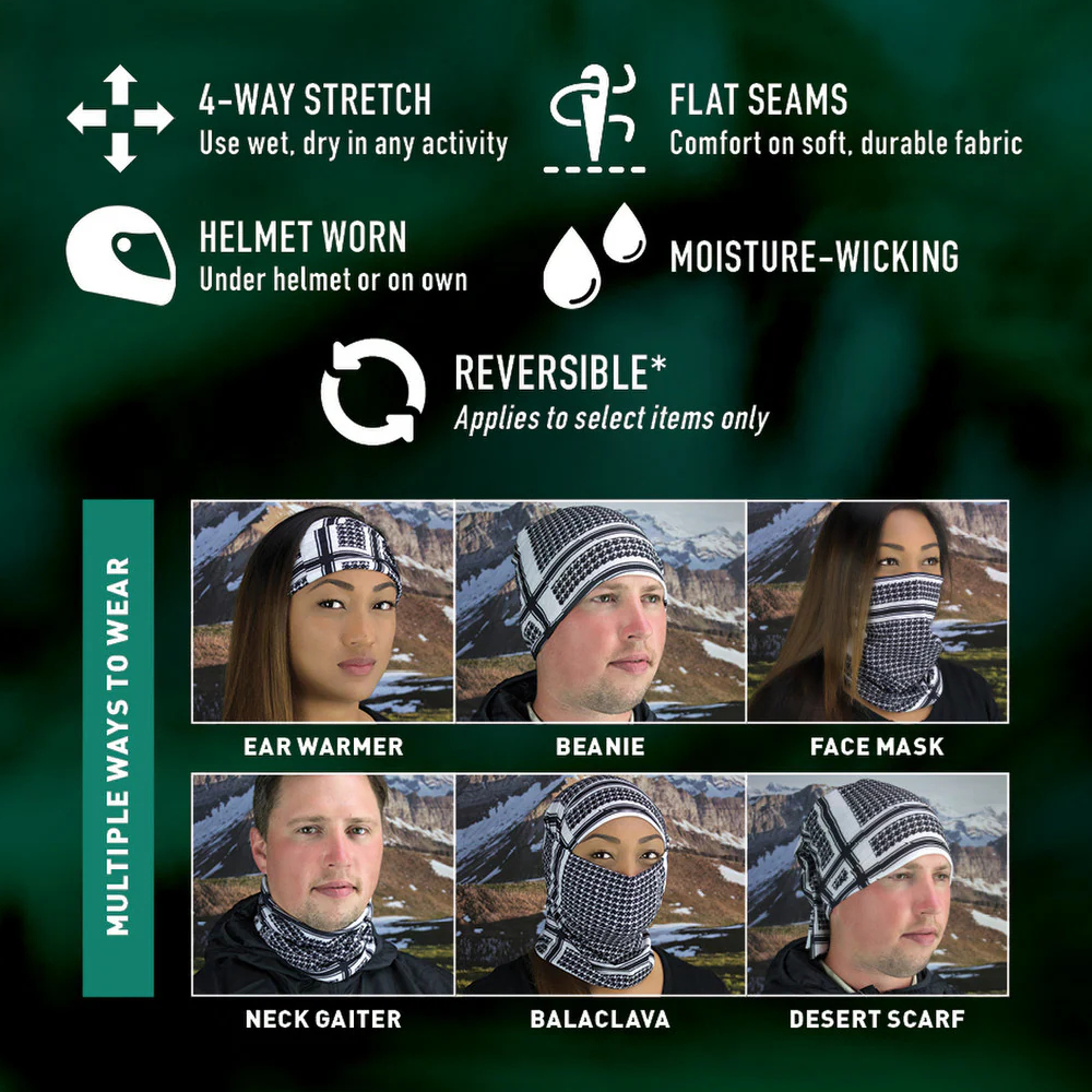 Stay Prepared For Any Environment With The Zan Headgear Motley Tube Polyester Black Paisley - T101! Designed From High-Performance, Breathable, And Moisture-Wicking Polyester, This Versatile Tube Is Perfect For Tactical Enthusiasts, Outdoor Adventurers, Or Anyone Seeking All-Weather Protection. With Six Unique Wearing Styles, Including A Balaclava, Neck Warmer, Face Mask, Ear Warmer, Desert Scarf, Or Beanie, It Ensures Adaptability And Superior Comfort In Both Warm And Cold Climates. Crafted From Durable 100% Polyester With A Sleek Black Finish, It’s The Ideal Gear For Intense Outdoor Missions, Long Rides, Or Casual Daily Use.