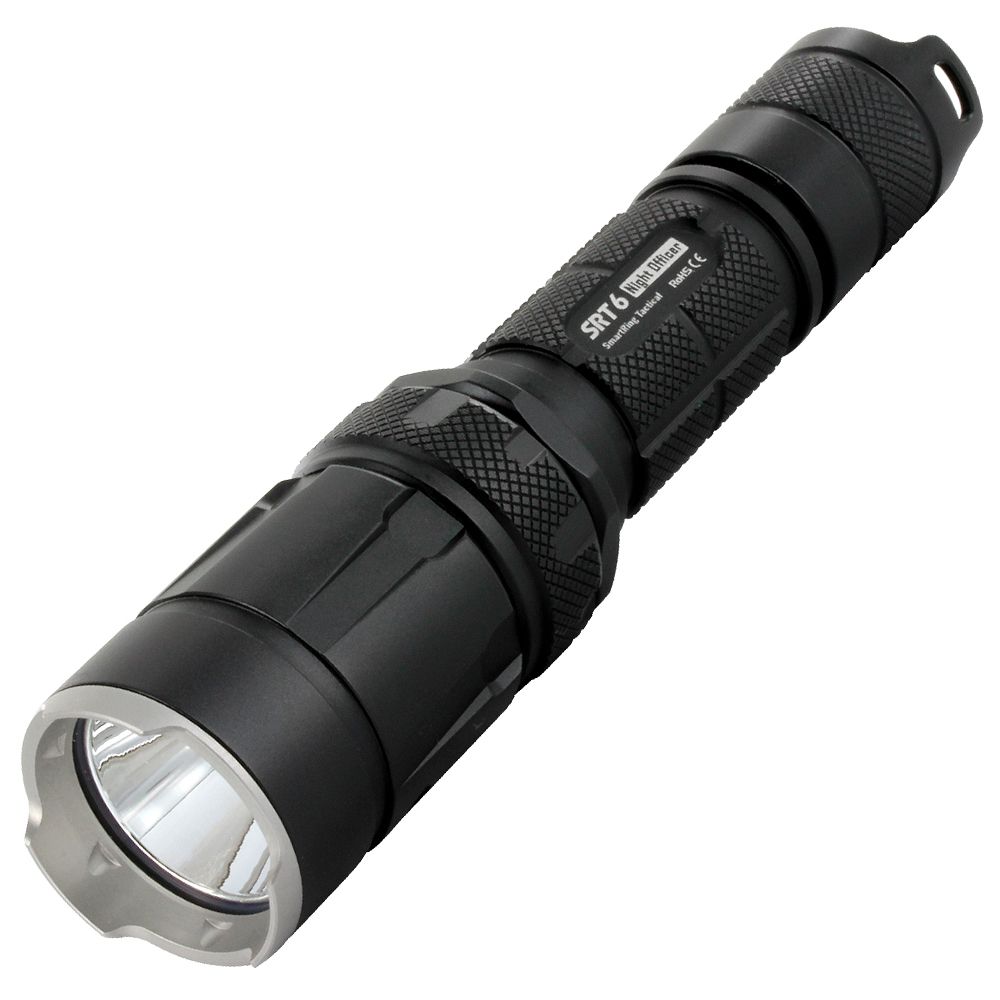 The Nitecore SRT6 is a bigger, smoother variant of the excellent SRT5 LED flashlight. An advanced XM-L2 T6 LED is effective, as well as efficient. The 930 lumen high mode is adequate to illuminate a large stretch of open ground outside, while the adjustable output can be toned down for indoor and close quarter operation. The industrial anodized aluminum body of the SRT6 is resistant to cuts and heavy impacts and is thirty minutes resistant to water damage at depths of up to two meters. The SRT6 provides the same special interface within the SRT family as its brothers. A tail-switch coupled with the special Smart Selector Ring by Nitecore optimizes the functionality of a tactical flashlight with the usability of an everyday user. To trigger the display, press the tail-switch and twist the ring to the bezel to progressively increase the output.
